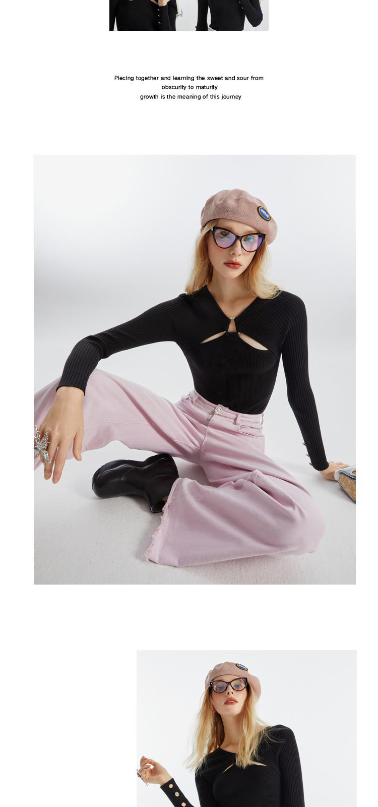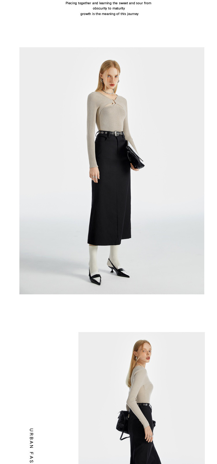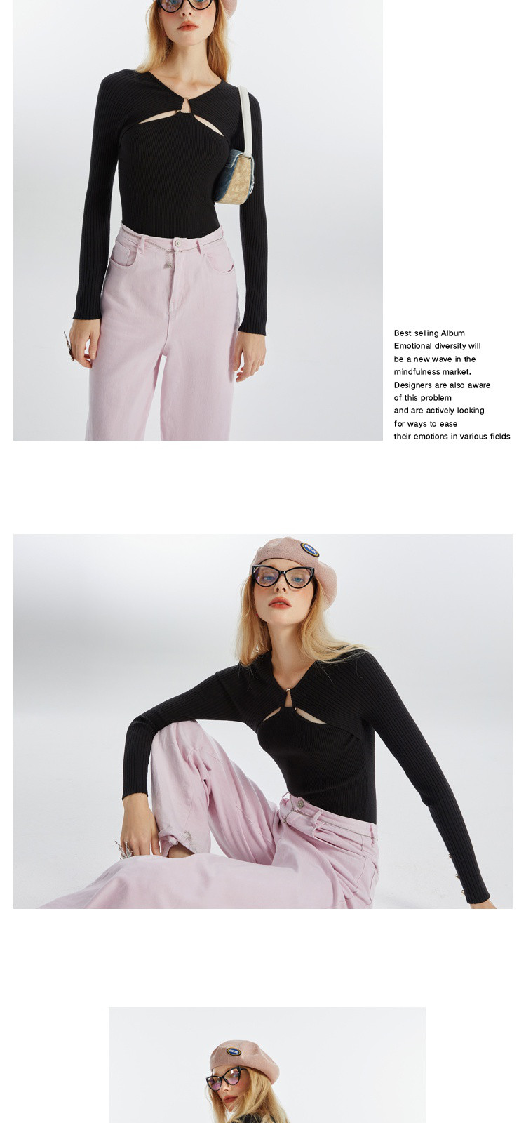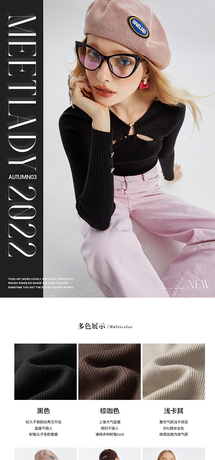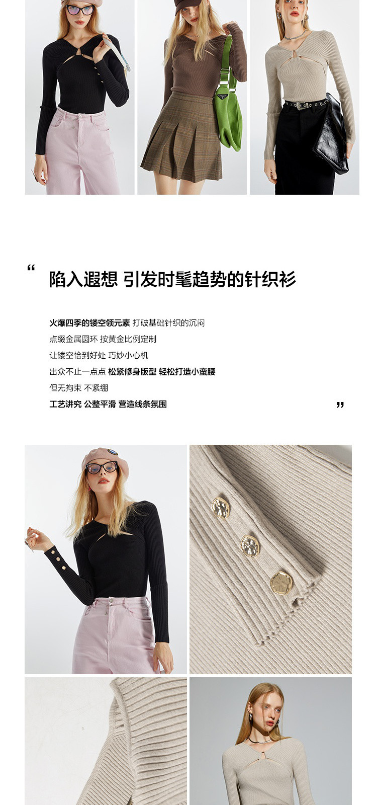 商品名称:【福利款|领口镂空】气质领口春秋款针织衫女小众内搭上衣 346132