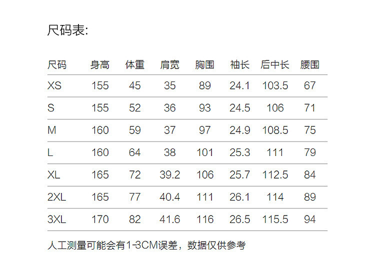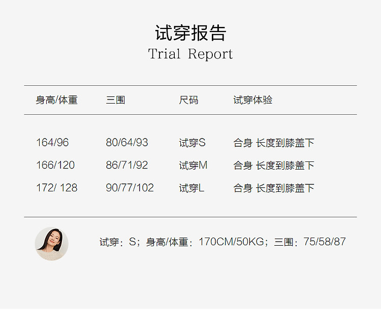 | 尺码 | 裙长(cm) | 肩宽(cm) | 腰围(cm) | 袖长(cm) | 胸围(cm) | 号型 |