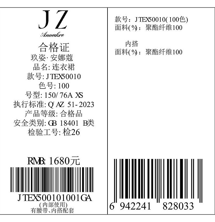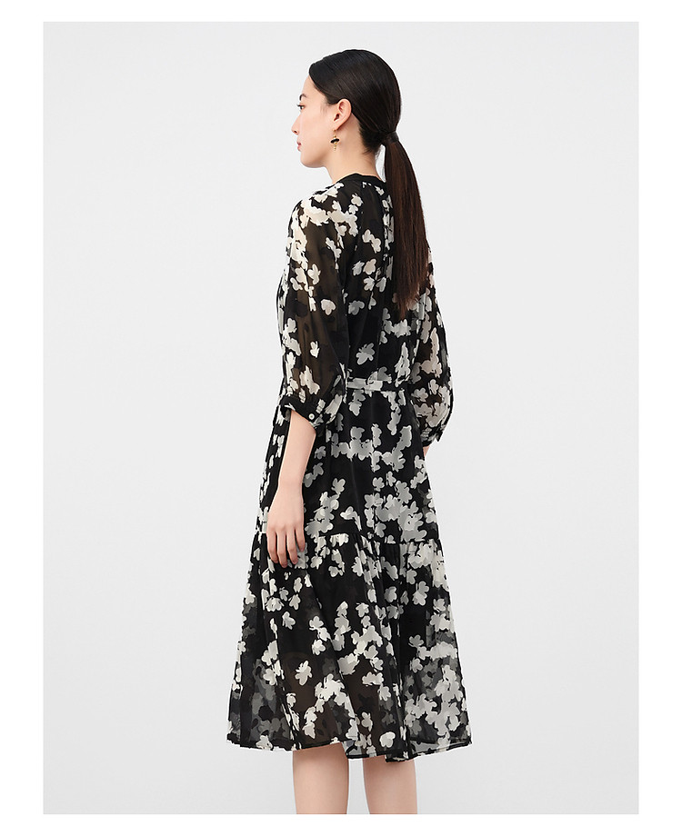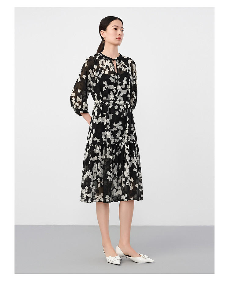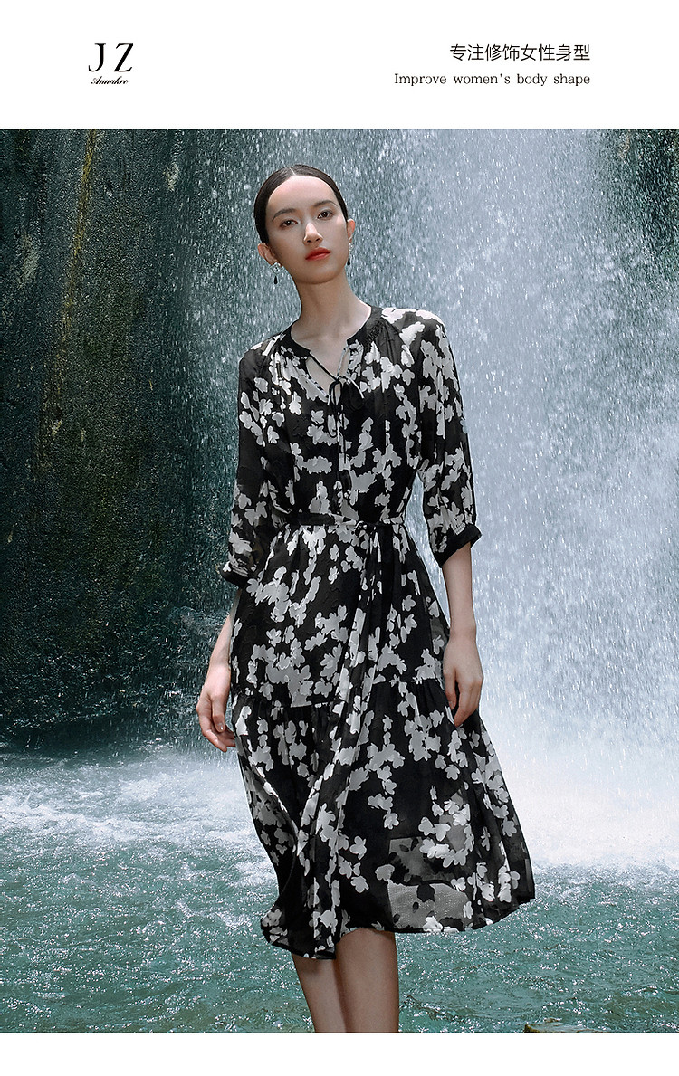 商品名称:玖姿旗下安娜蔻系列摩登剪花雪纺两件套连衣裙女夏季 510988