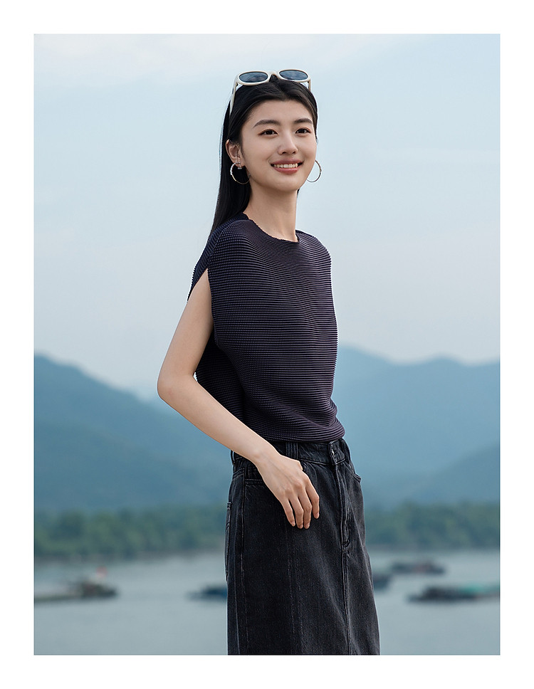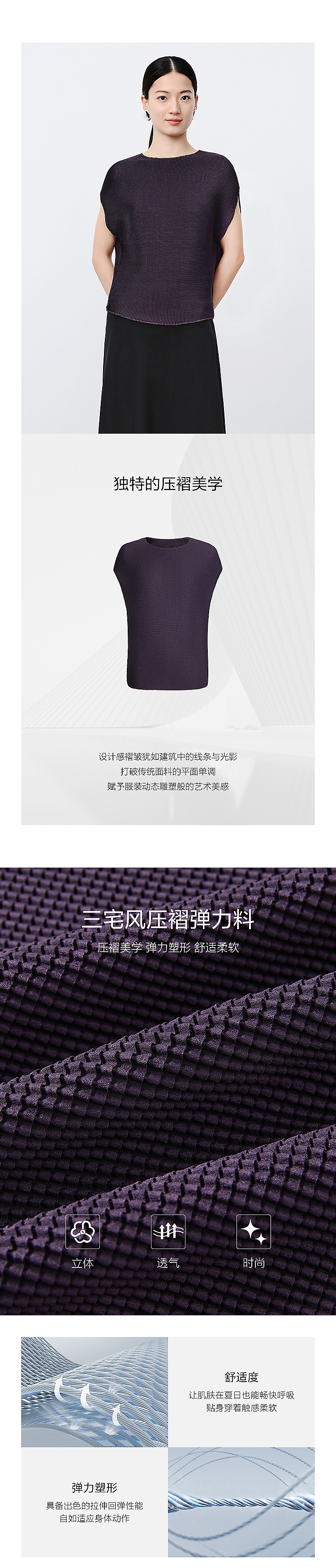 旗下安娜蔻系列三宅风简约压褶肌理感弹力宽松单上衣女夏季 517260