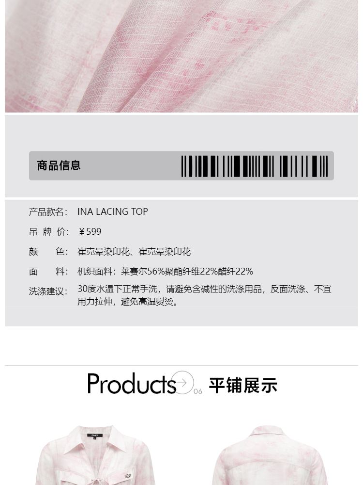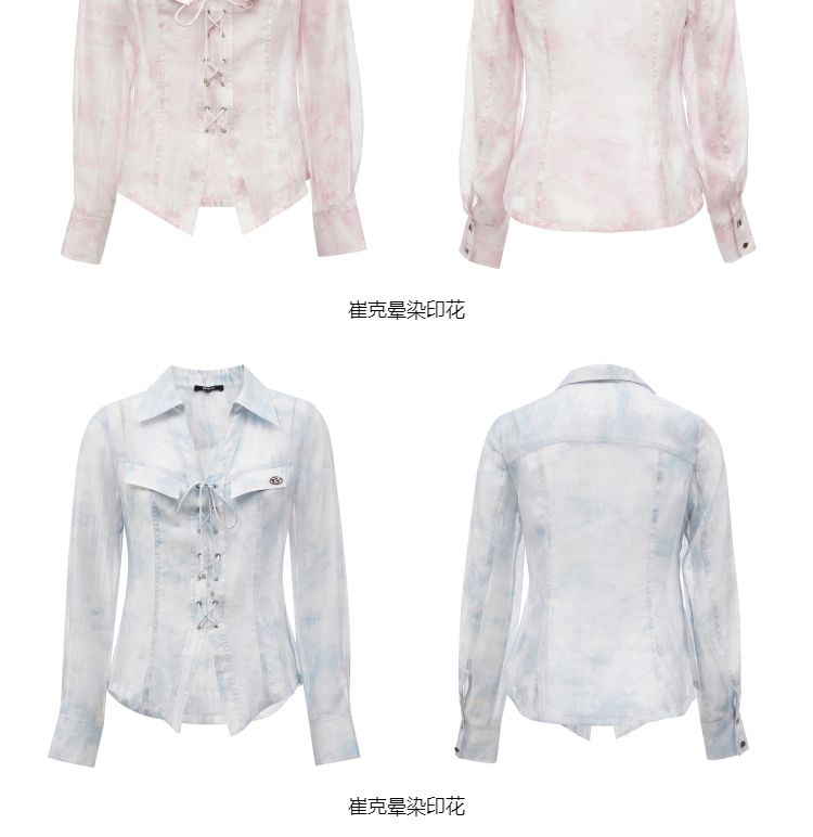 商品名称:【甜酷设计】夏季含莱赛尔甜酷设计感绑带晕染印花薄款衬衫女 766746