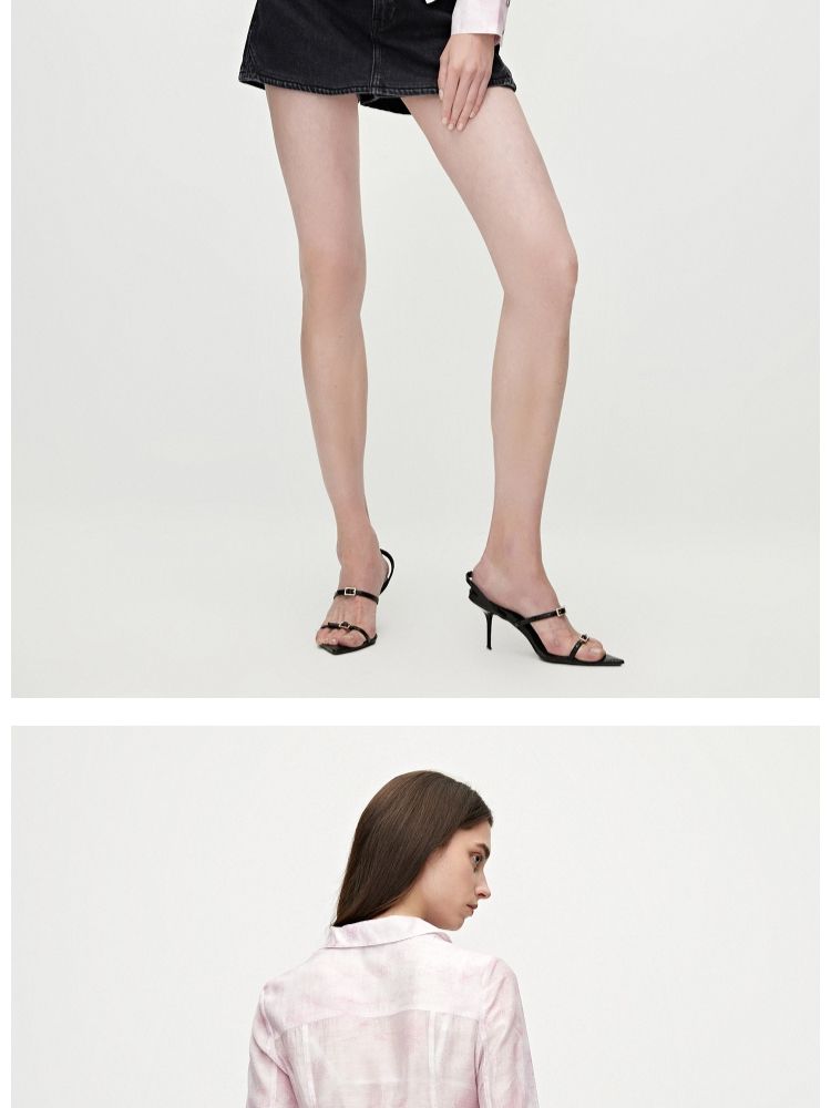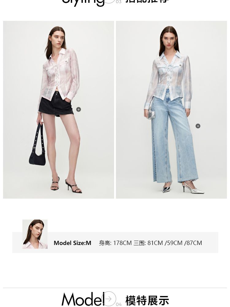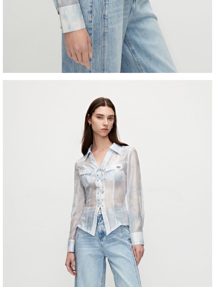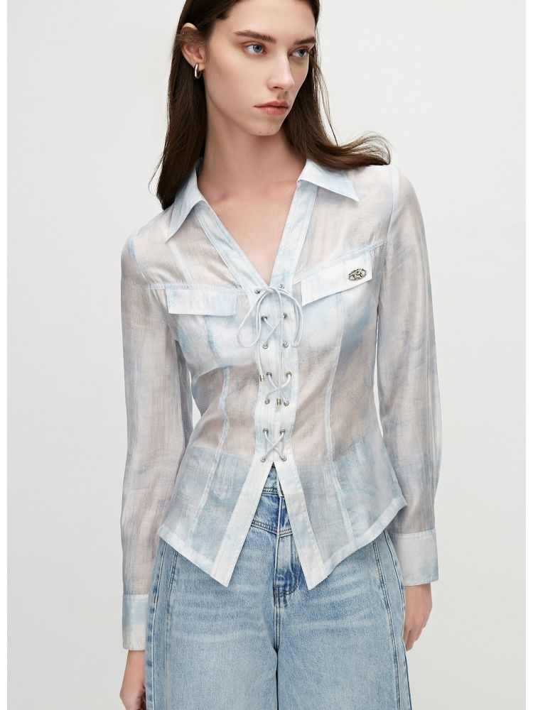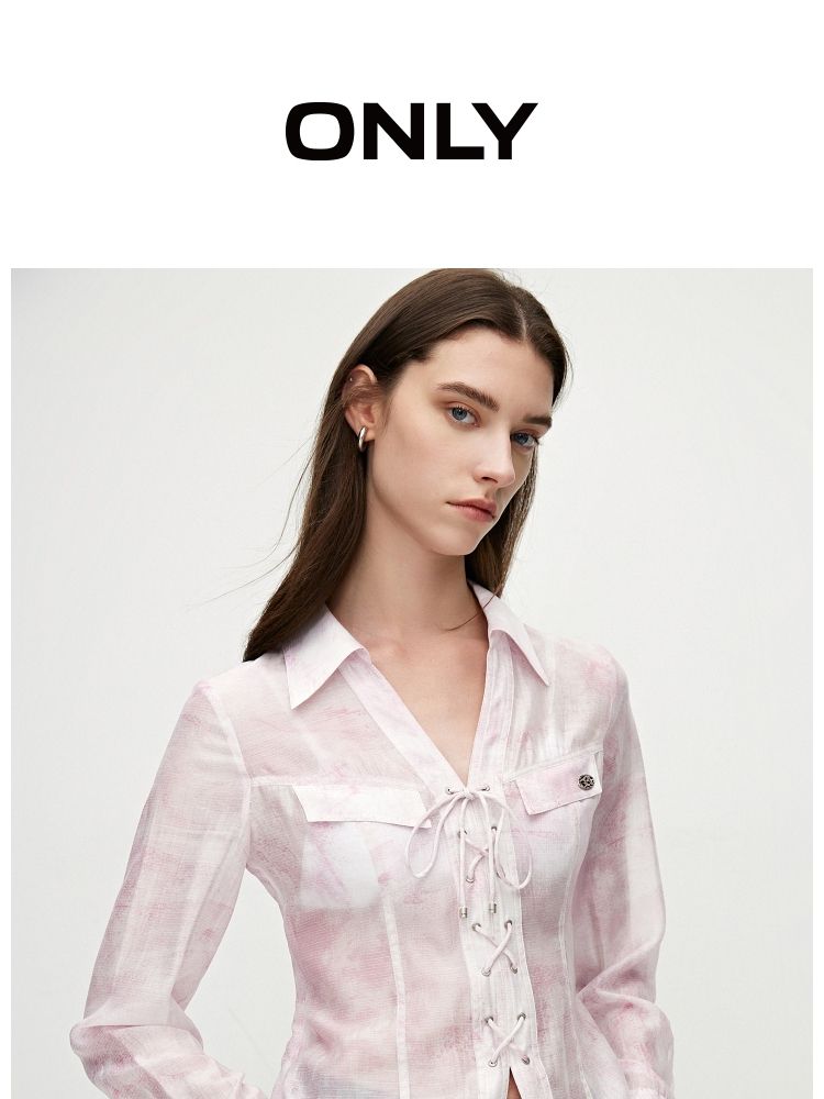 【甜酷设计】夏季含莱赛尔甜酷设计感绑带晕染印花薄款衬衫女 766746
