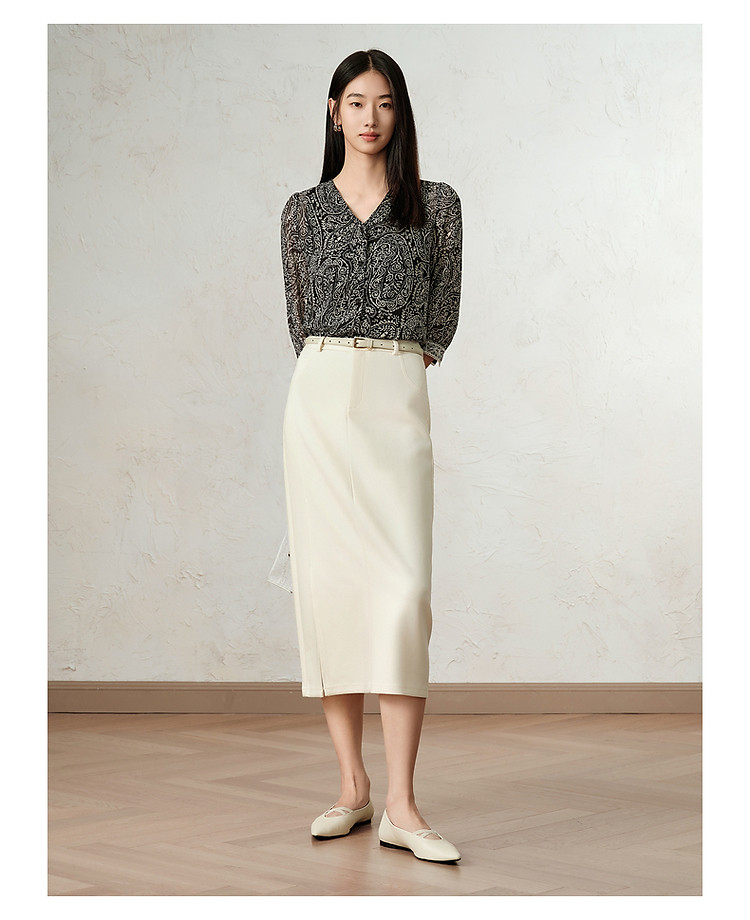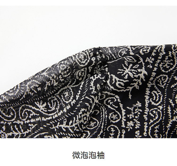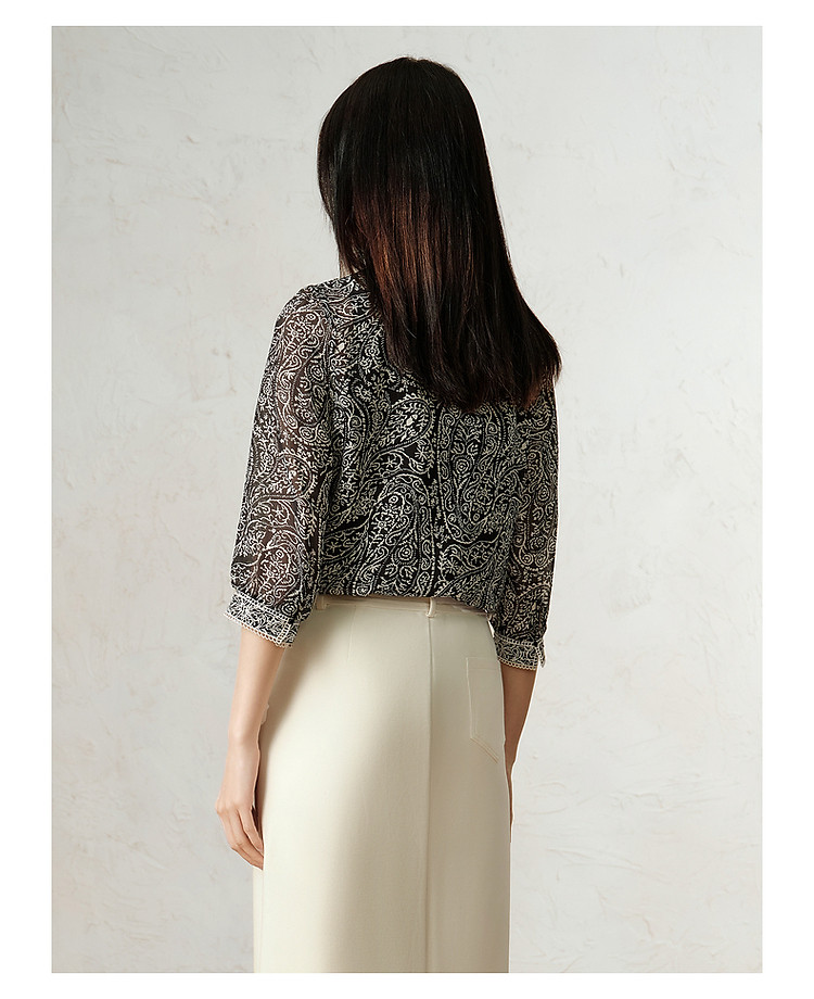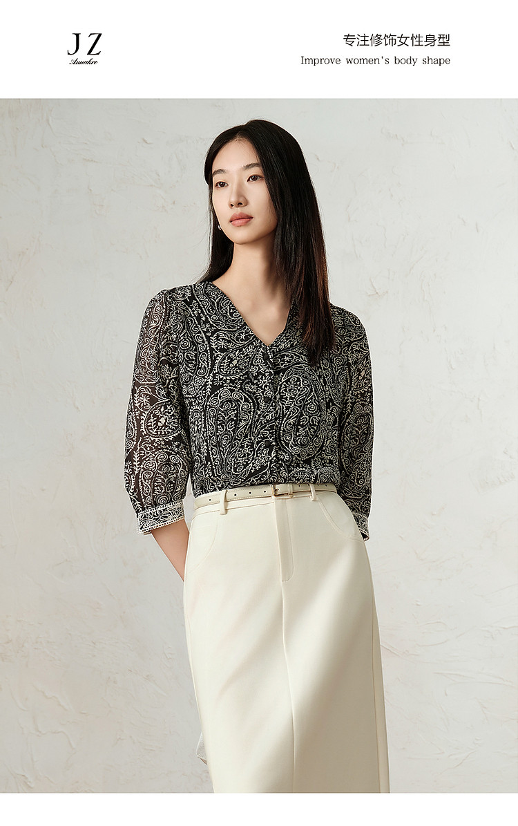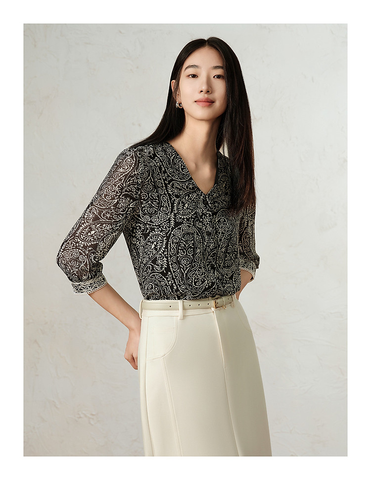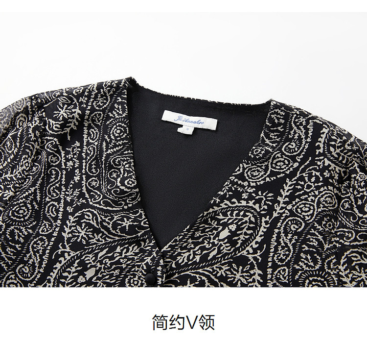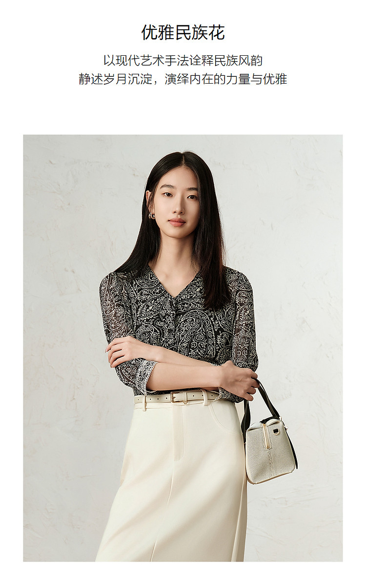 旗下安娜蔻系列佩斯利优雅民族风刺绣印花V领宽松衬衫女夏季 019148