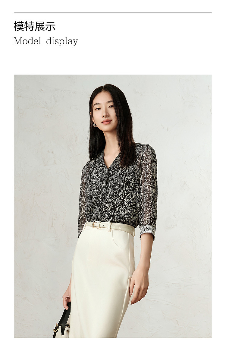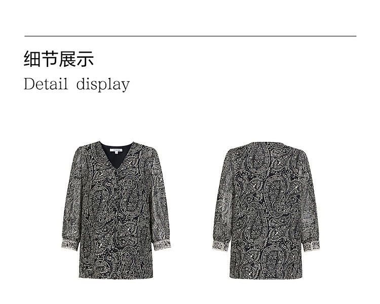 商品名称:旗下安娜蔻系列佩斯利优雅民族风刺绣印花V领宽松衬衫女夏季 019148