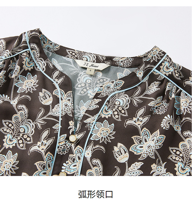玖姿商场同款花卉轻熟风雪纺套头上衣短袖夏季 657292