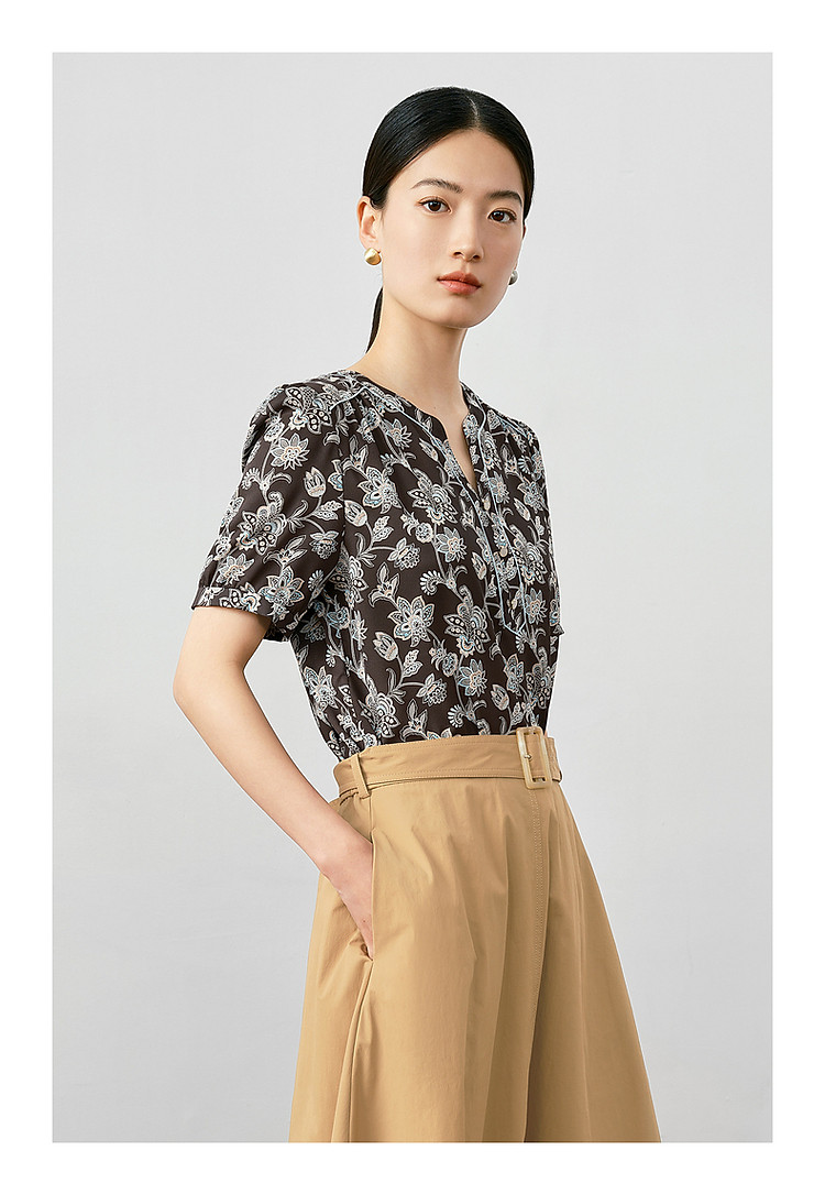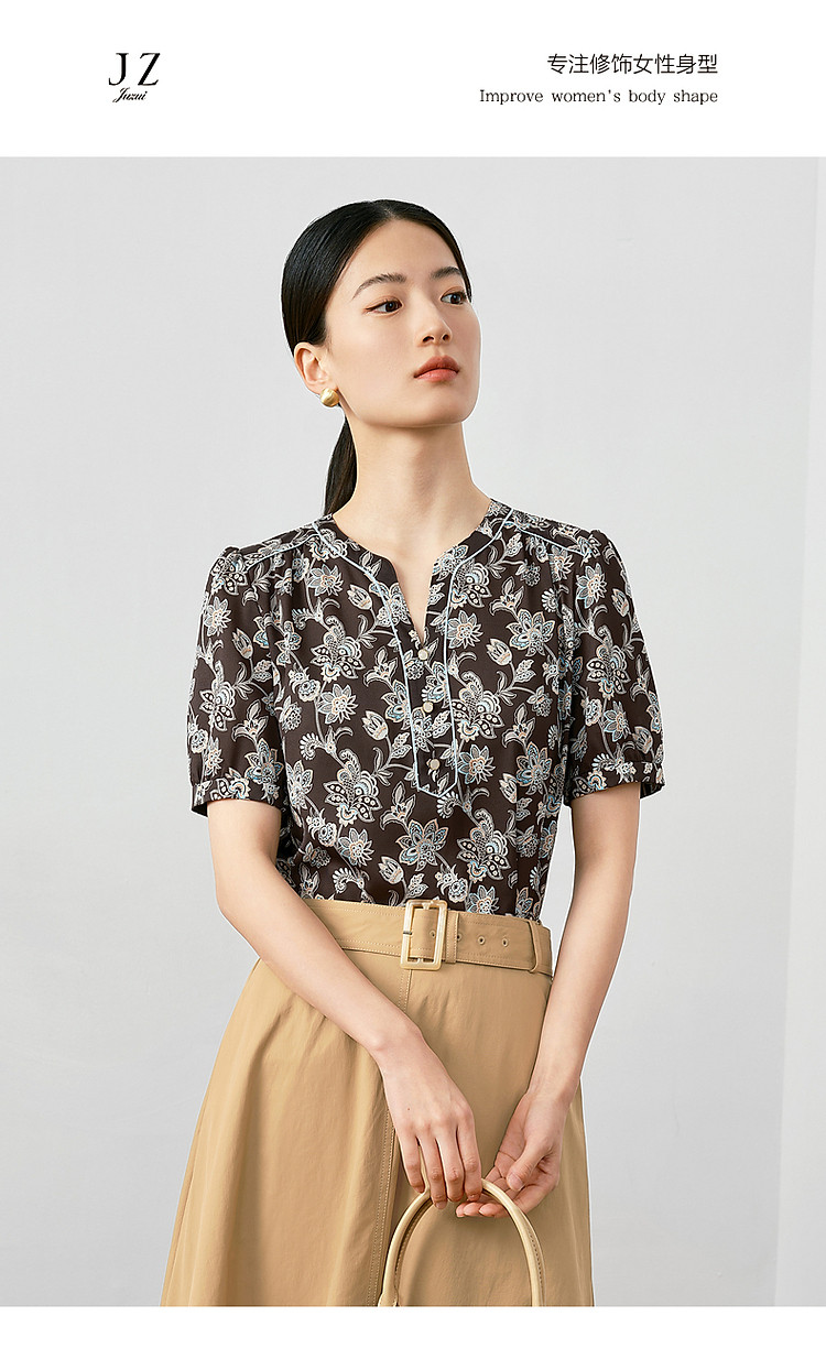 商品名称:玖姿商场同款花卉轻熟风雪纺套头上衣短袖夏季 657292
