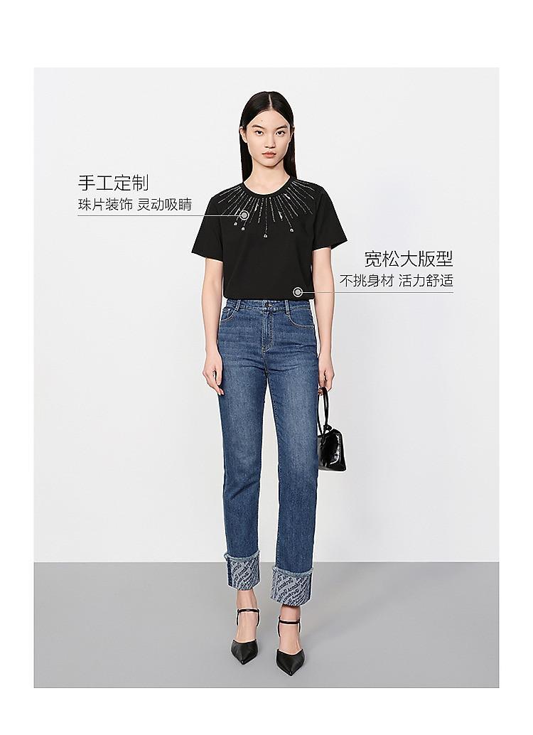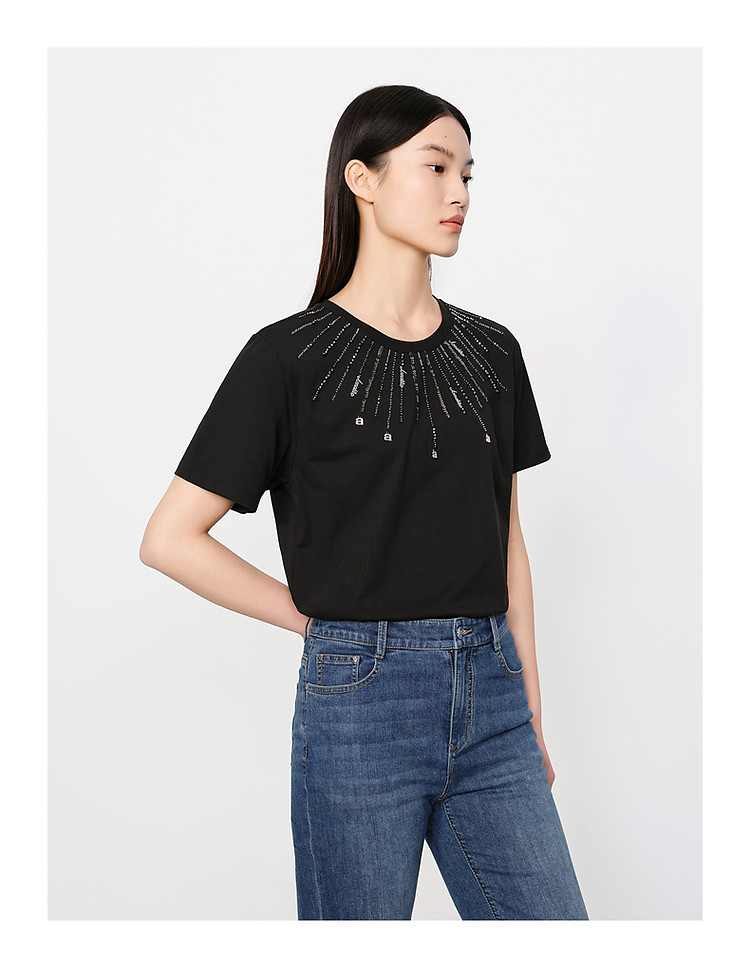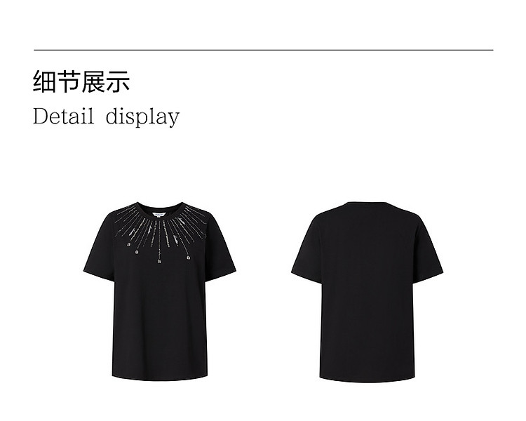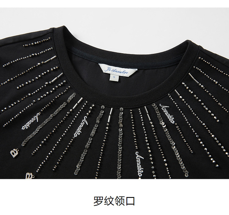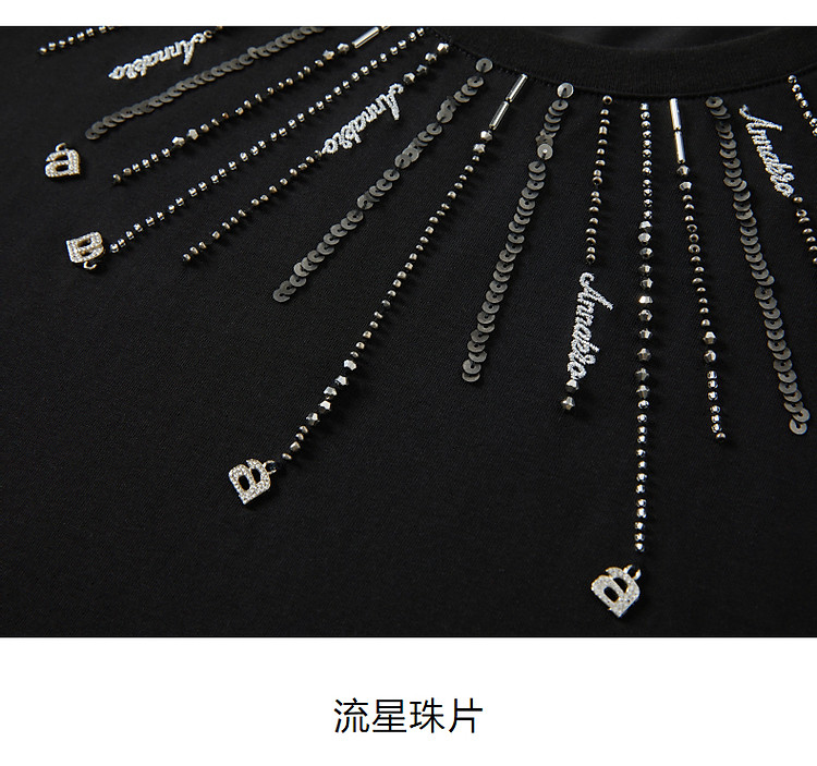 商品名称:玖姿旗下安娜蔻系列花漾星辰简约珠片钉珠宽松上衣T恤女 795084