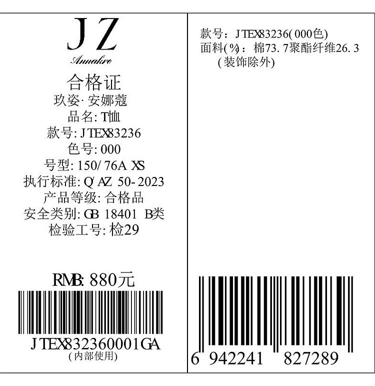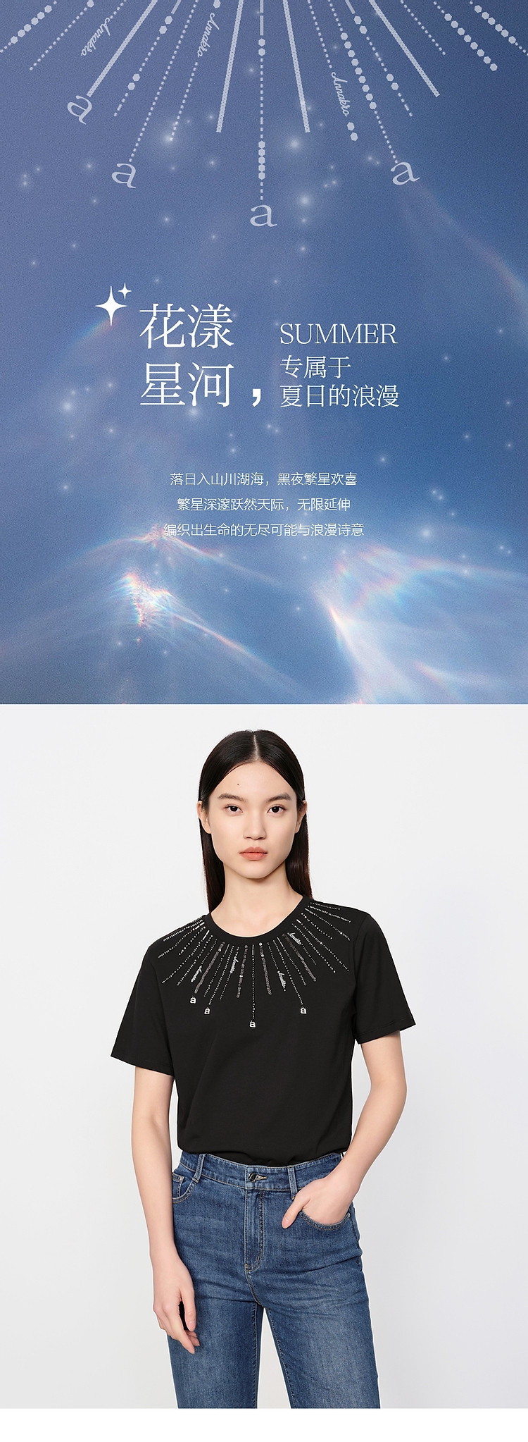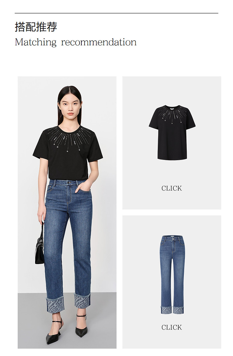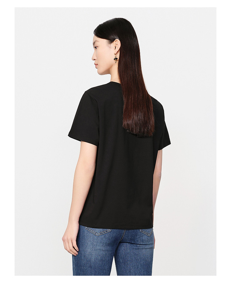 商品名称:玖姿旗下安娜蔻系列花漾星辰简约珠片钉珠宽松上衣T恤女 795084