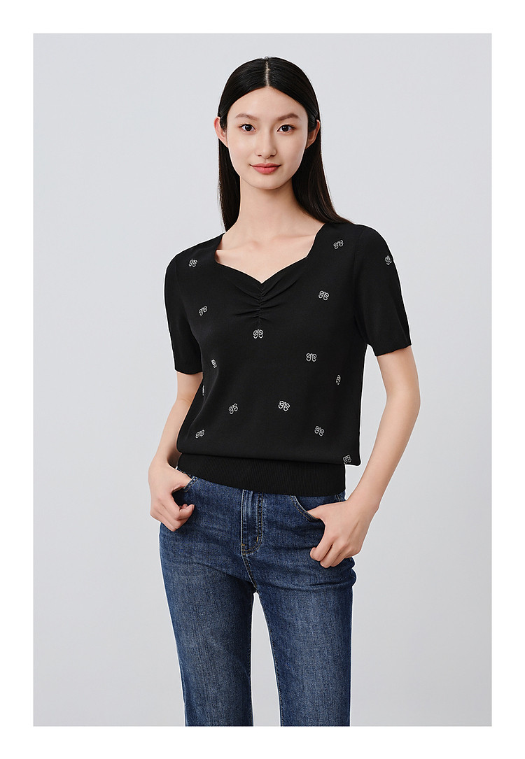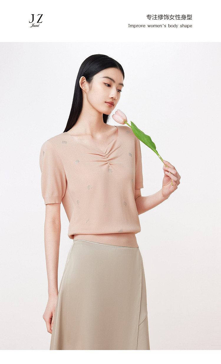 JZ玖姿商场同款优雅气质短袖针织衫女夏季JWDX31213 474572