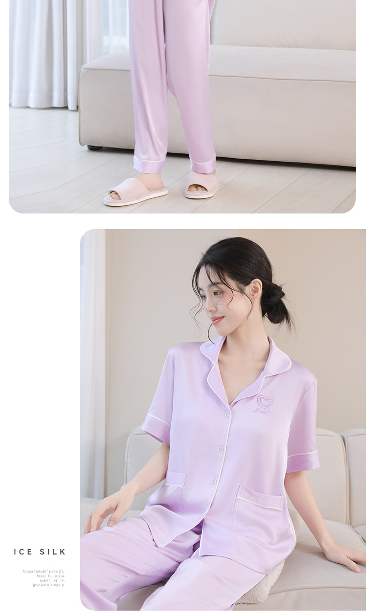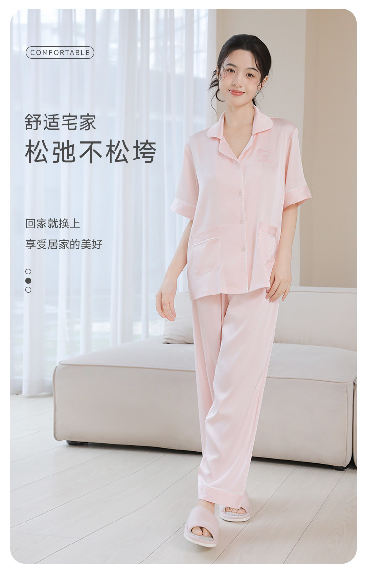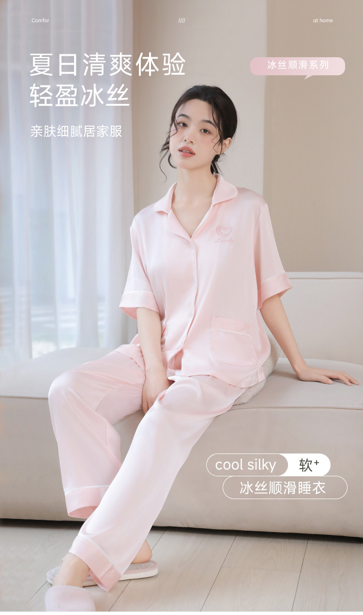 【轻透丝滑】女士冰丝睡衣夏季薄款两件套睡衣可外穿家居服套装女 530827
