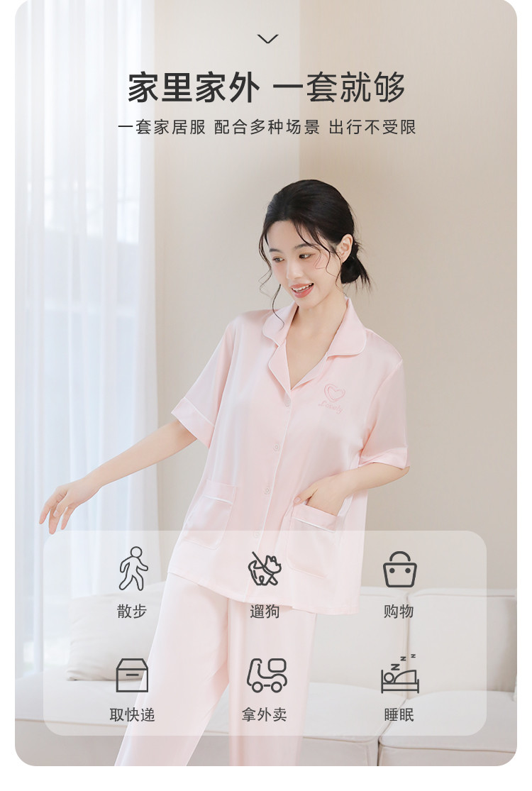 商品名称:【轻透丝滑】女士冰丝睡衣夏季薄款两件套睡衣可外穿家居服套装女 530827