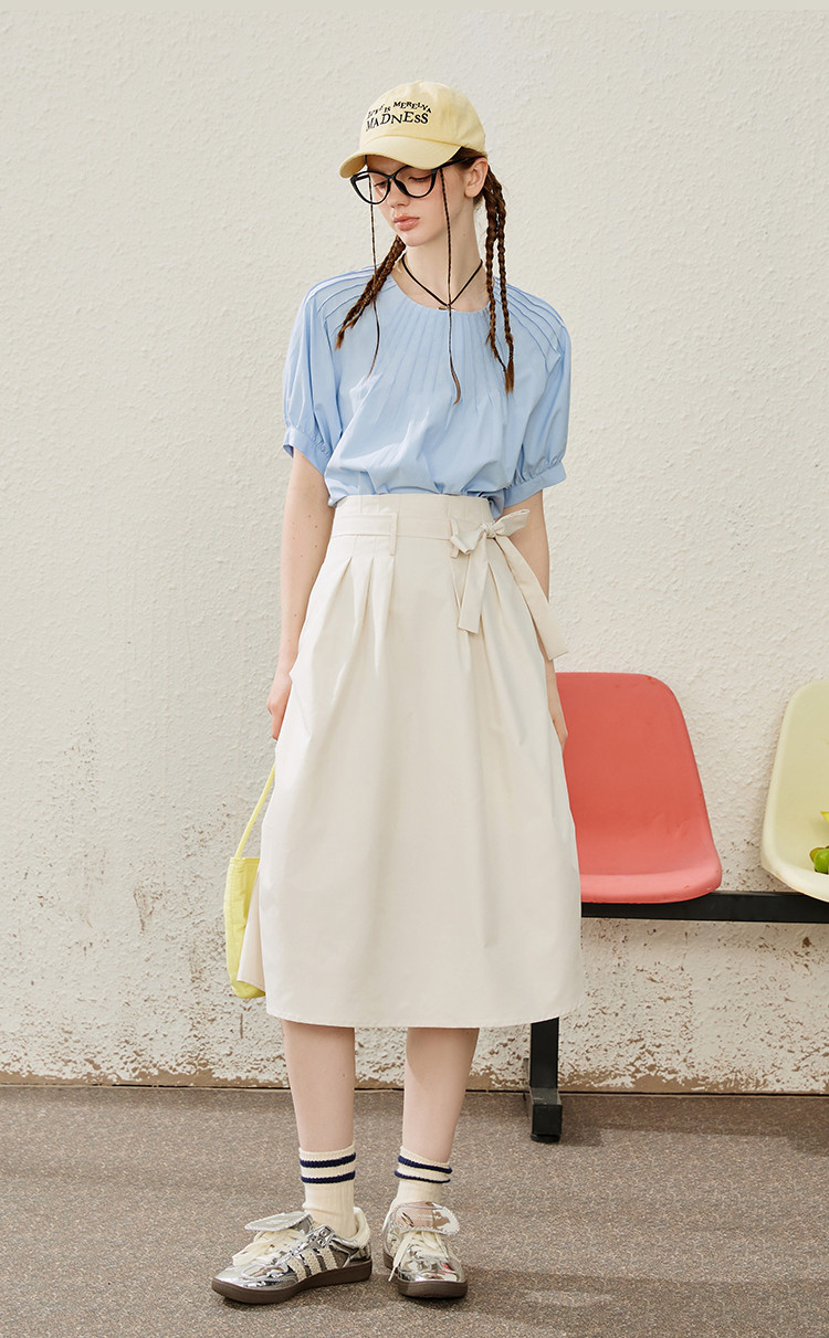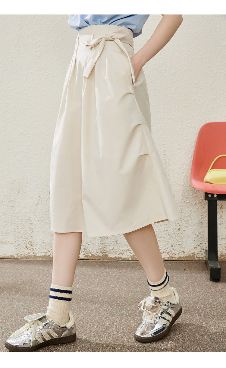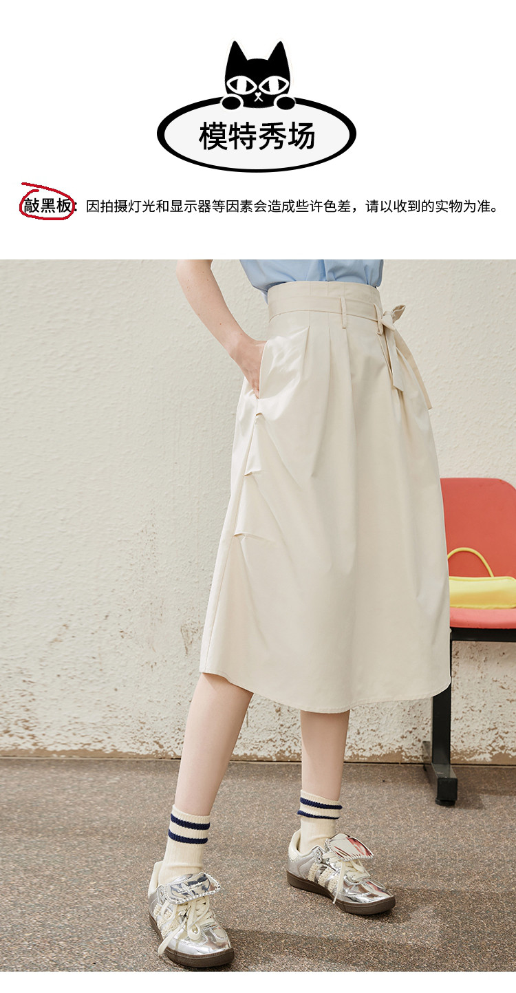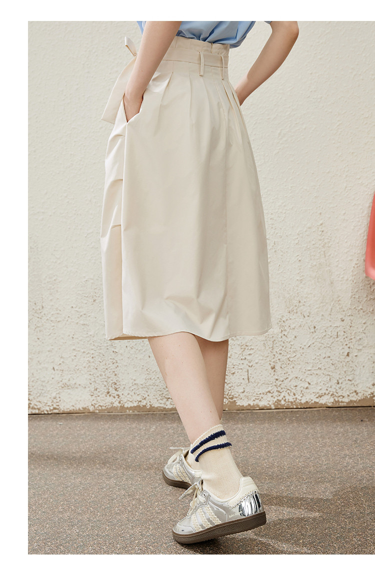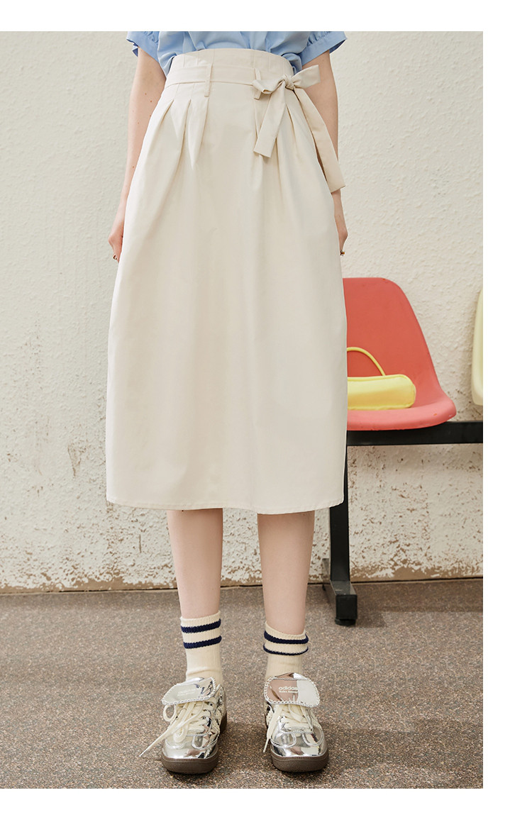 商品名称:收腰系带文艺显瘦高腰半截裙夏季纯色简约气质中长款裙 774685