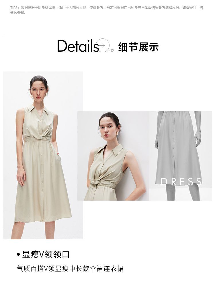 商品名称:【气质百搭】夏季V领显瘦中长款伞裙连衣裙女 055002