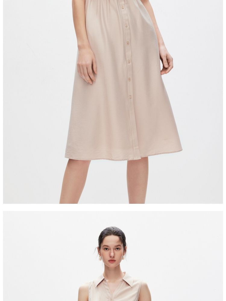【气质百搭】夏季V领显瘦中长款伞裙连衣裙女 055002