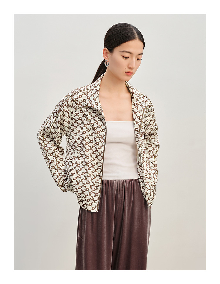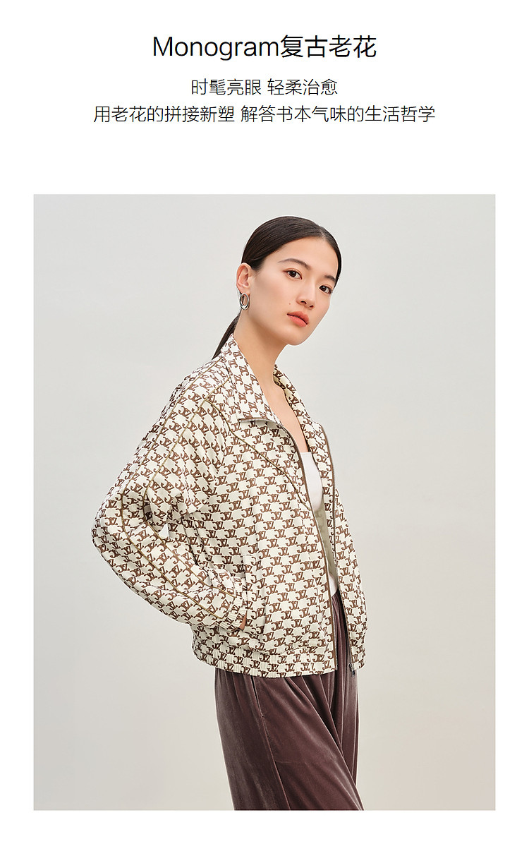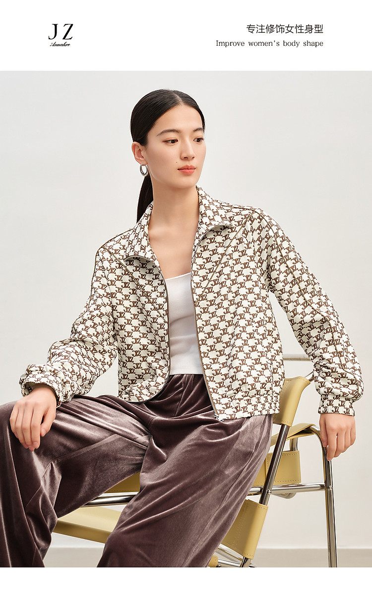 玖姿旗下安娜蔻系列复古休闲老钱风印花外套女春季 738188