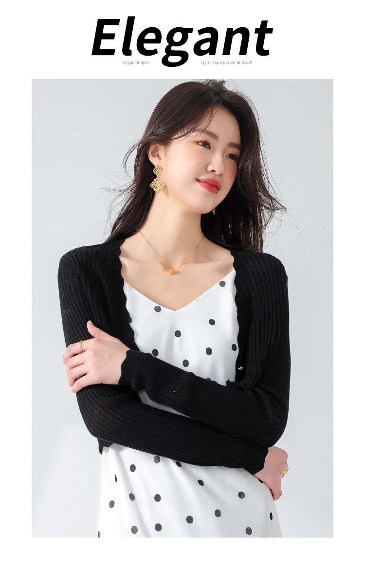 【含桑蚕丝】轻薄透气纯色百搭单粒扣针织开衫毛衣外套空调衫 796563