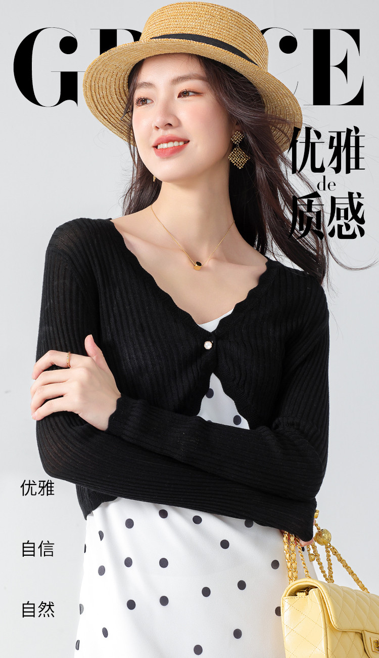 商品名称:【含桑蚕丝】轻薄透气纯色百搭单粒扣针织开衫毛衣外套空调衫 796563