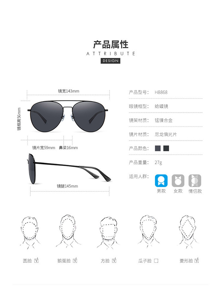 商品名称:海伦凯勒飞行员驾驶尼龙偏光太阳镜男女 456539
