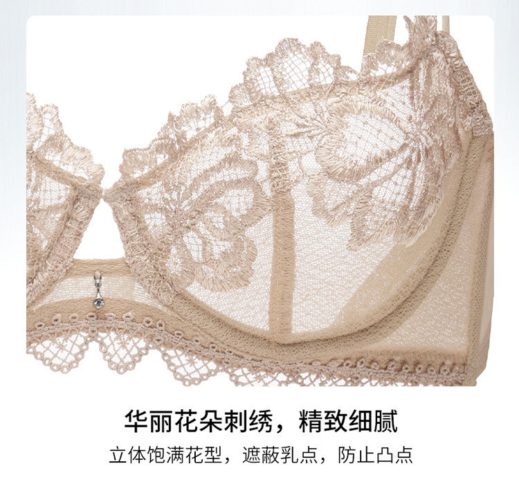 超薄不凸点蕾丝聚拢内衣女大胸大码文胸 374597