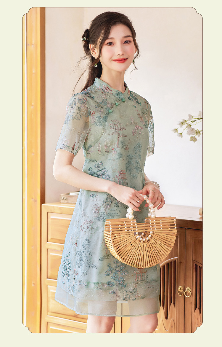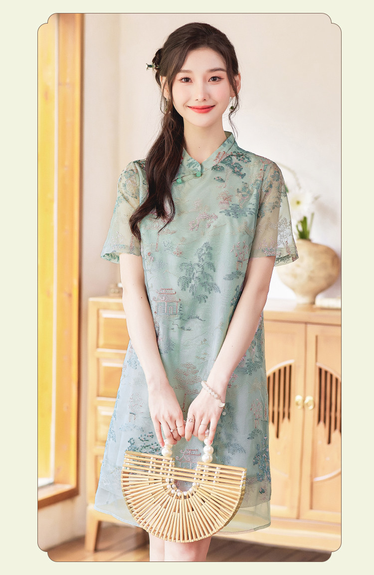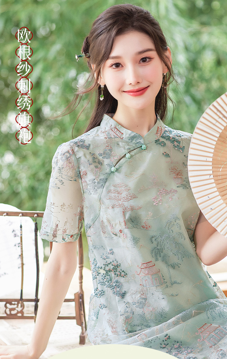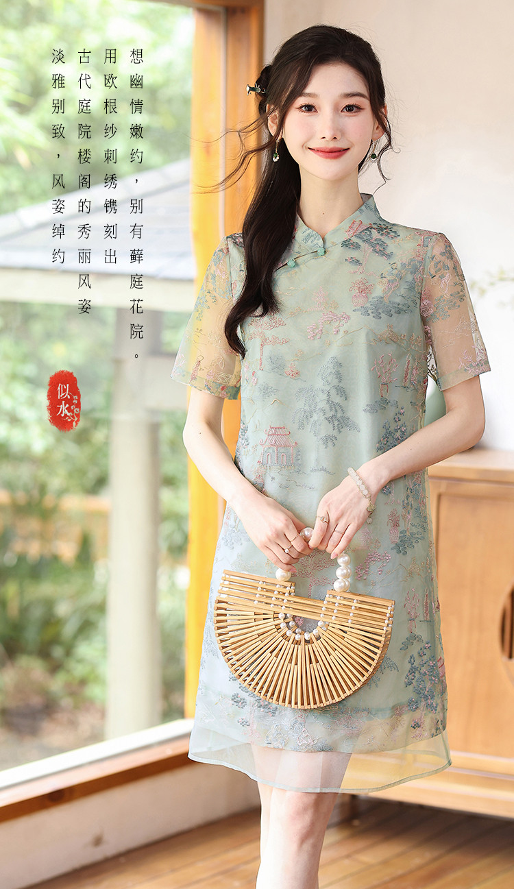 【藓庭花院】夏高级感改良旗袍立体刺绣设计感显瘦小个子连衣裙 625944