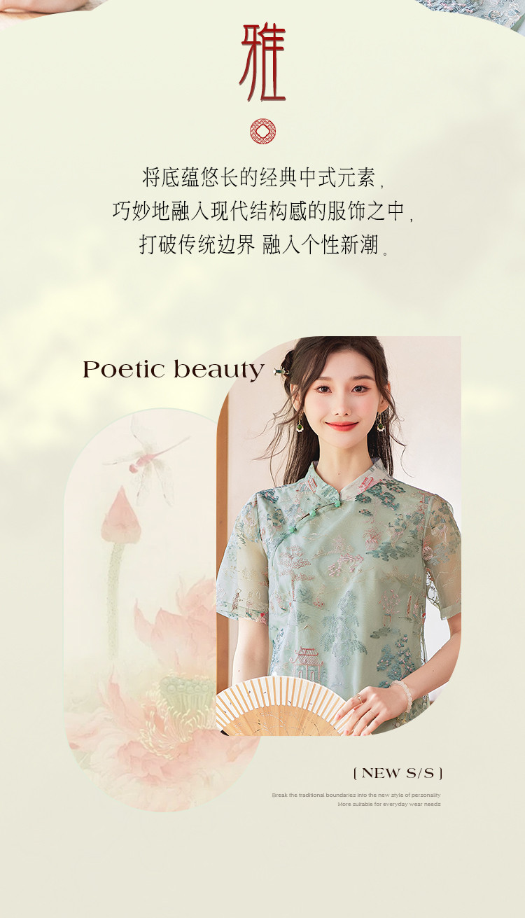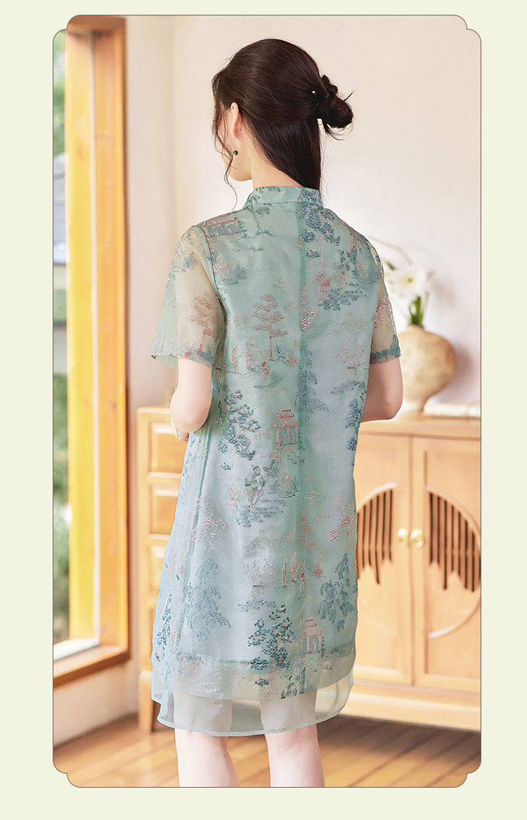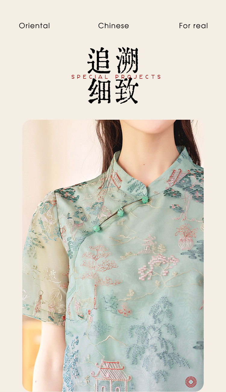 【藓庭花院】夏高级感改良旗袍立体刺绣设计感显瘦小个子连衣裙 625944