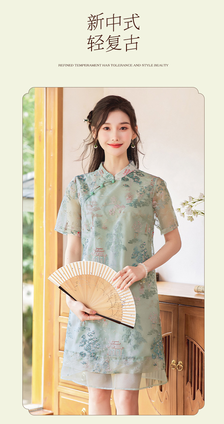 商品名称:【藓庭花院】夏高级感改良旗袍立体刺绣设计感显瘦小个子连衣裙 625944