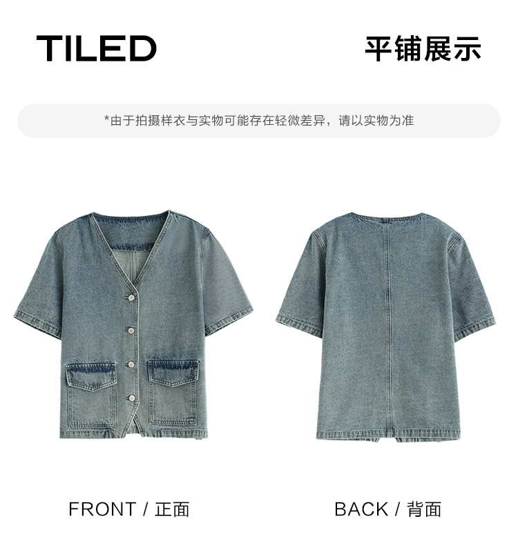 商品名称:【V领牛仔外套】夏款酷帅街头风气质正肩袖复古外套女 256514
