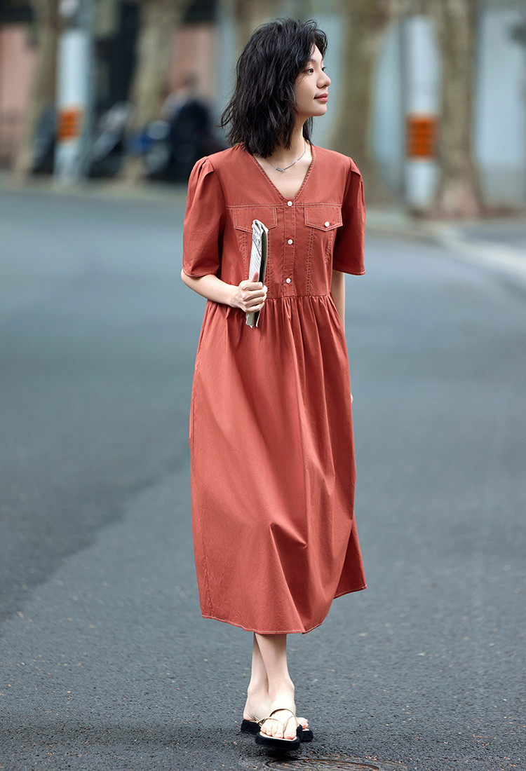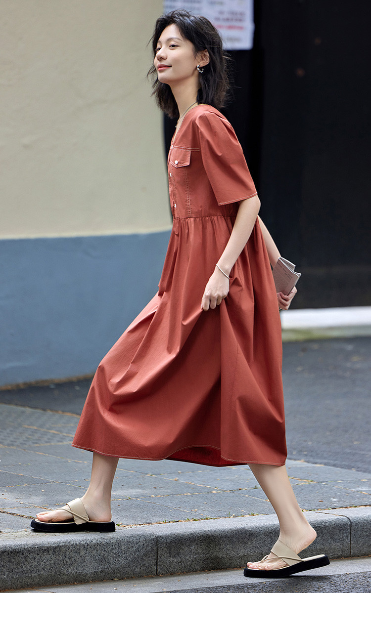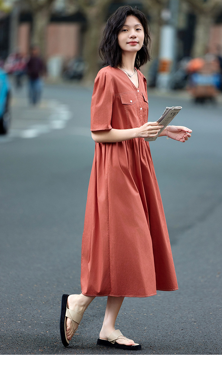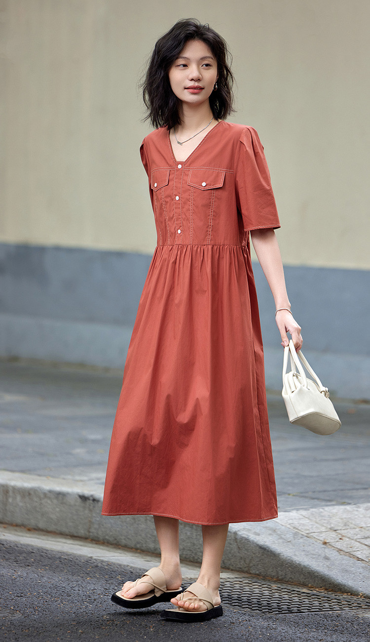 商品名称:【松弛感连衣裙】夏轻薄透气清爽舒适亲肤休闲活力橘红 824002