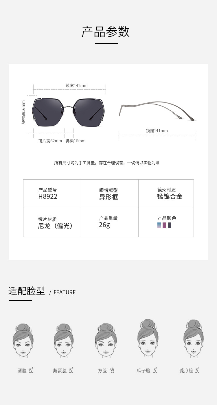 商品名称:海伦凯勒偏光防紫外线太阳镜女百搭潮流质感墨镜 239131