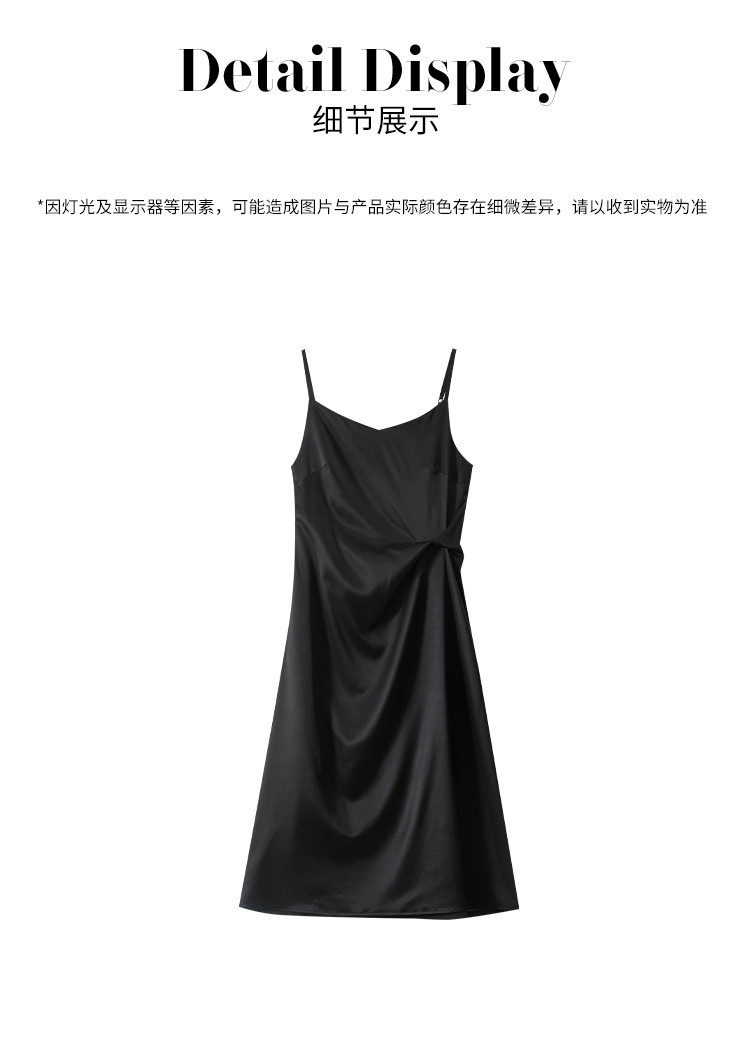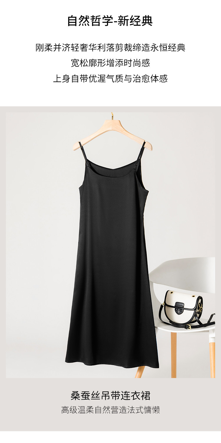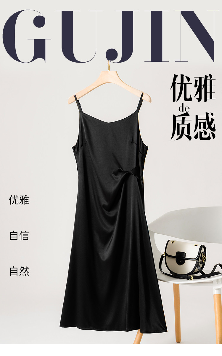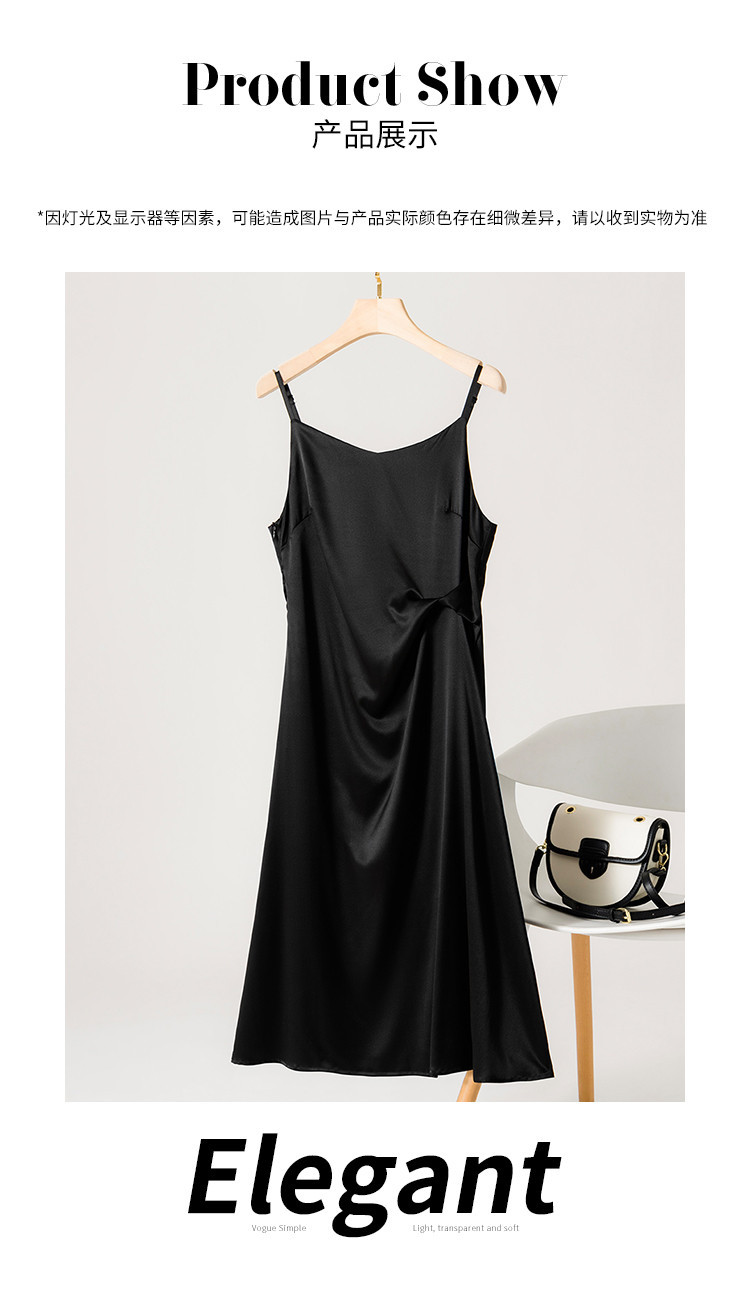 商品名称:【19姆米桑蚕丝】优雅气质纯色V领吊带中长裙吊带连衣裙小黑裙 662483