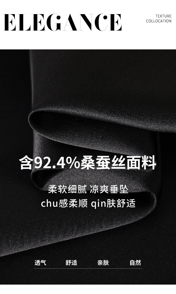 【19姆米桑蚕丝】优雅气质纯色V领吊带中长裙吊带连衣裙小黑裙 662483