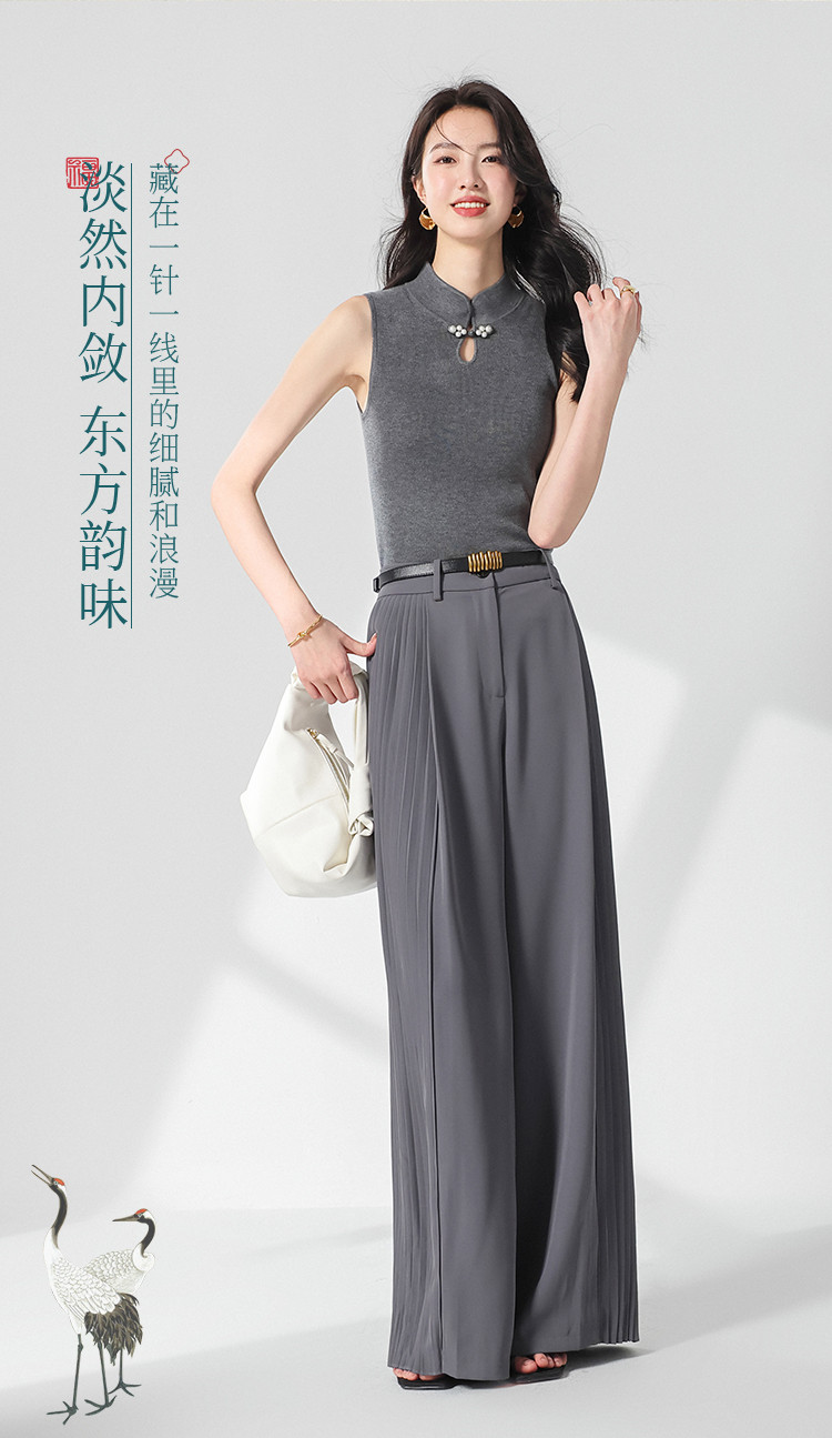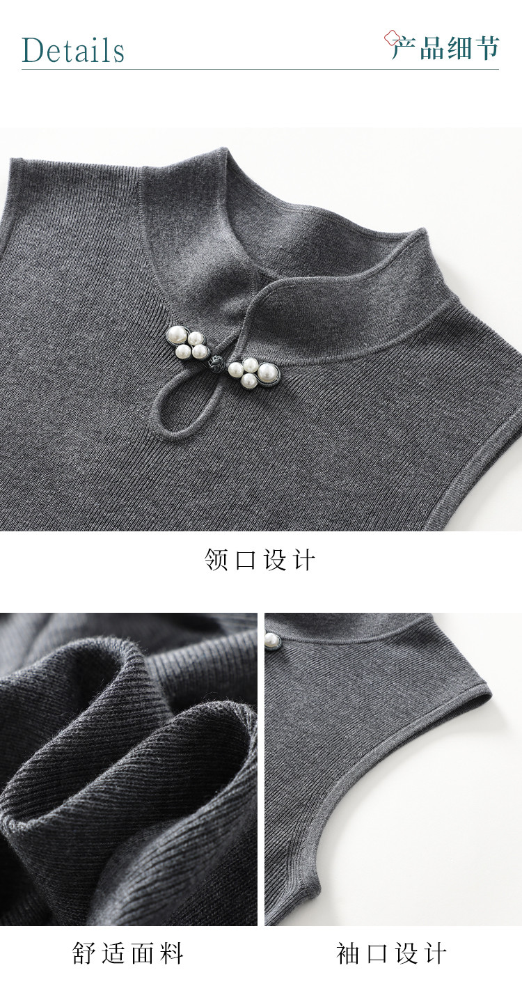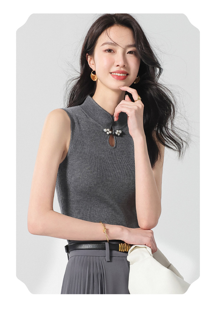 商品名称:【国风】新中式轻薄透气含桑蚕丝立领无袖针织打底衫背心夏款马甲 182675