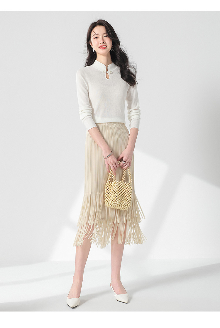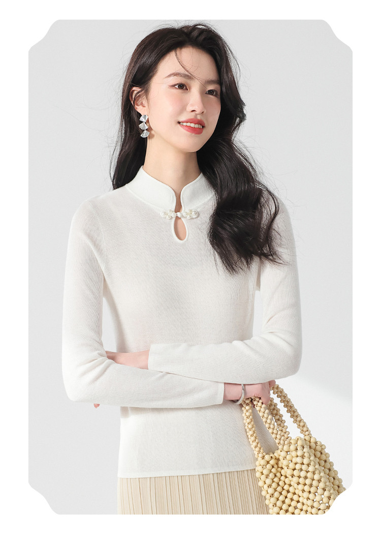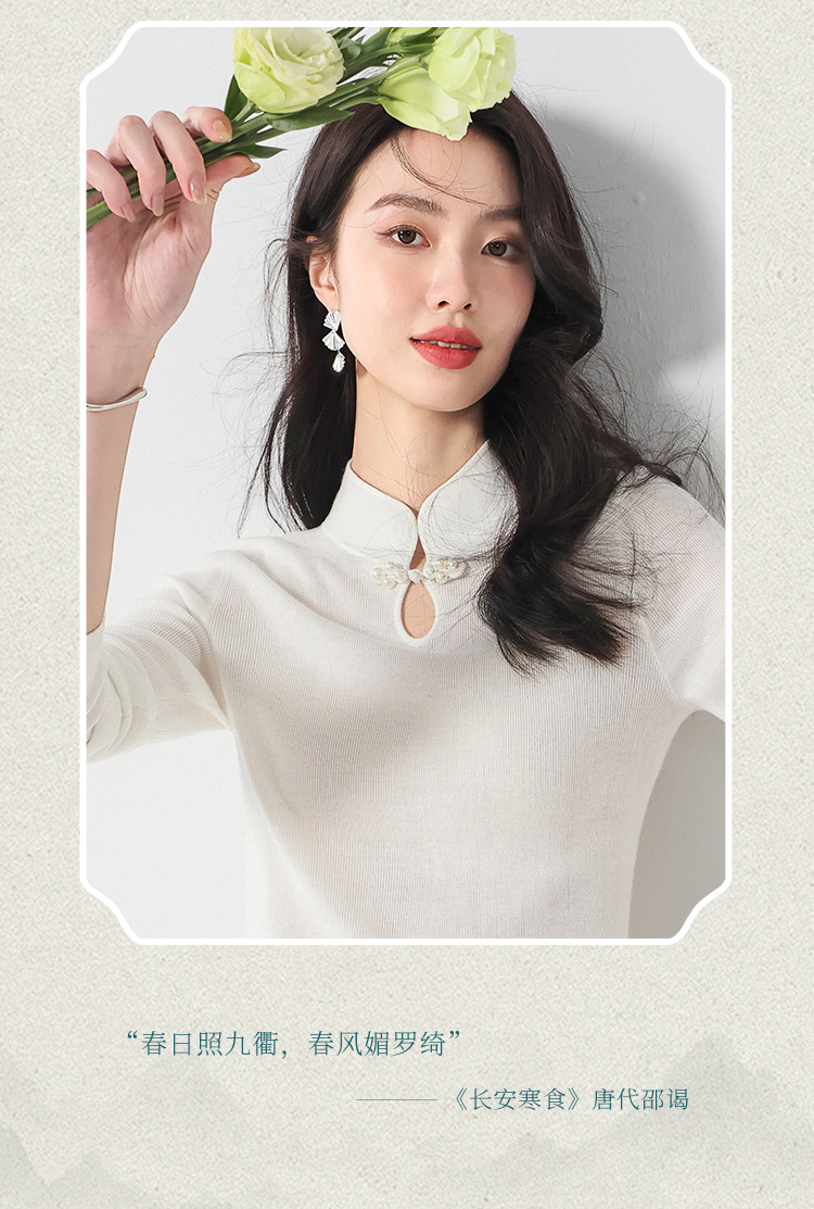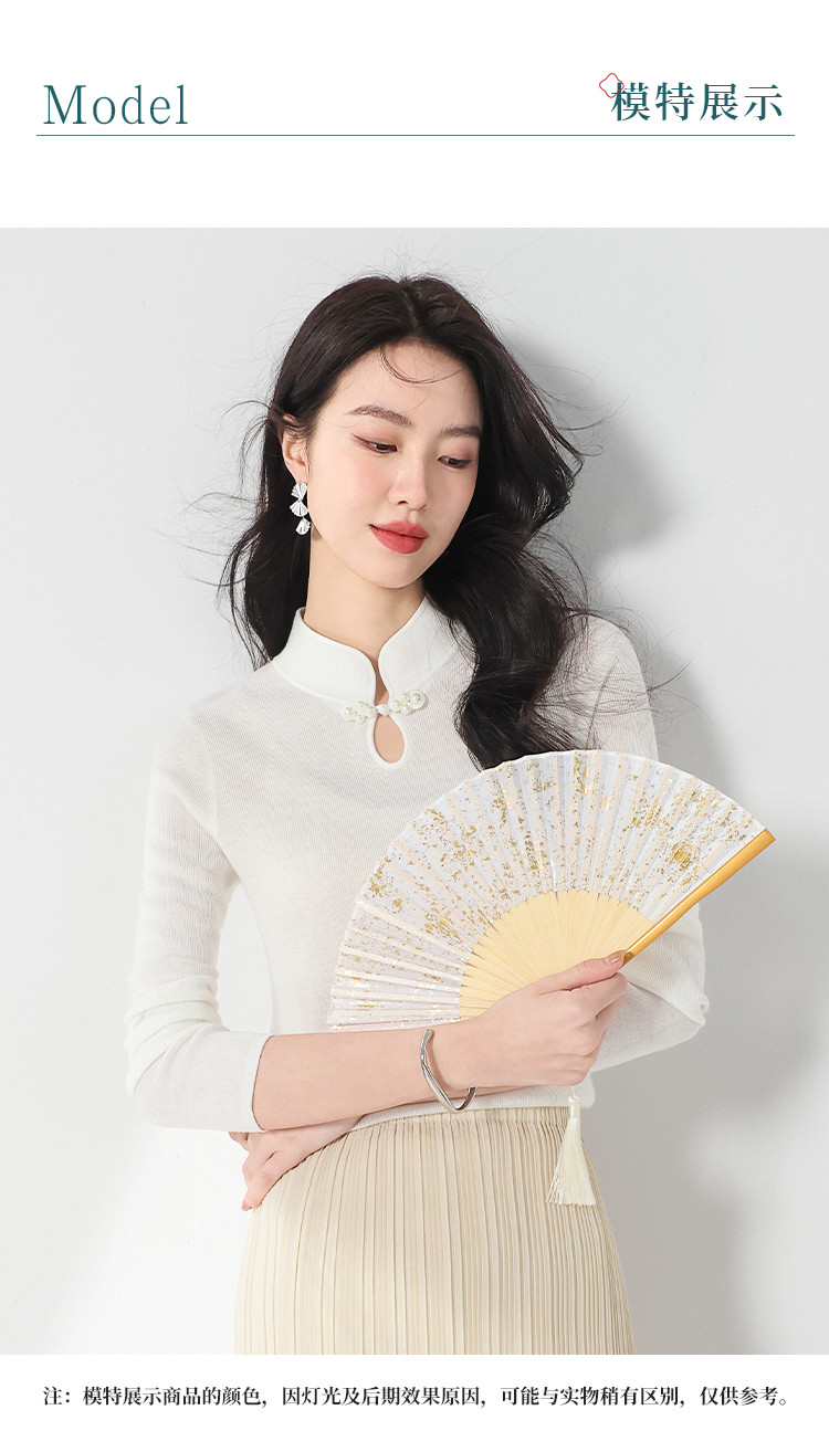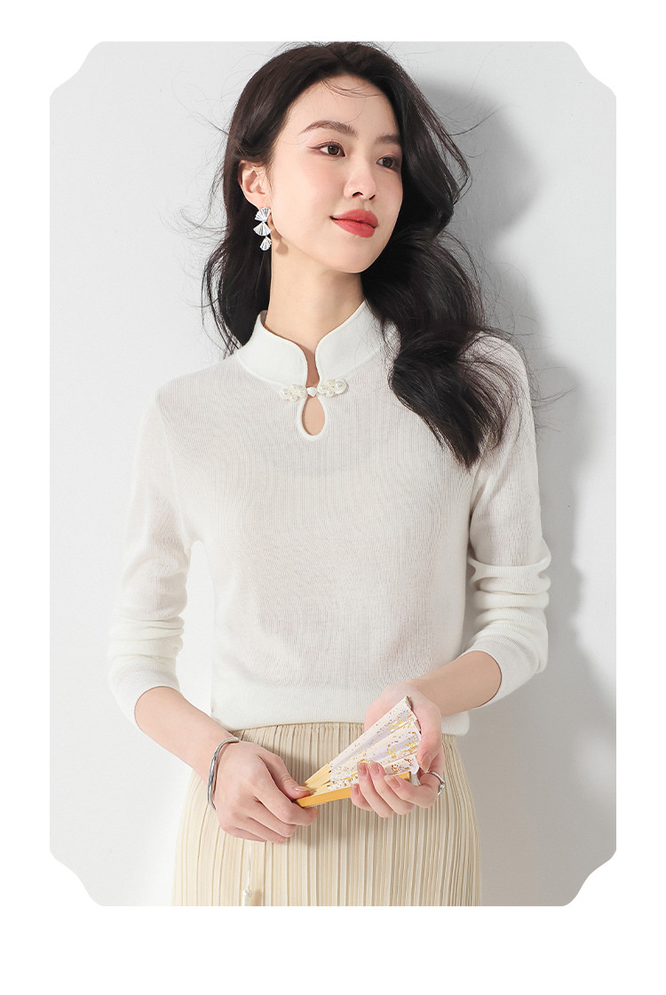 商品名称:国风新中式轻薄透气含桑蚕丝立领针织打底衫夏款长袖T恤妈妈装 350611