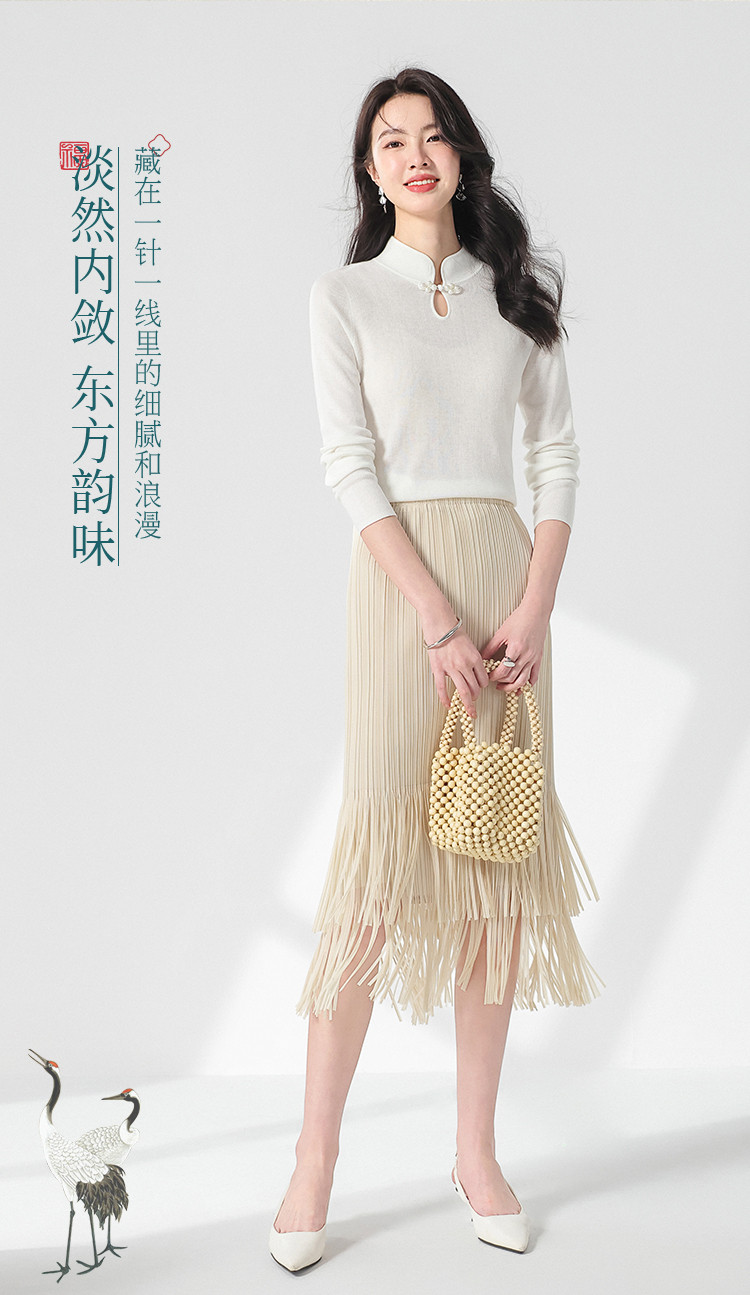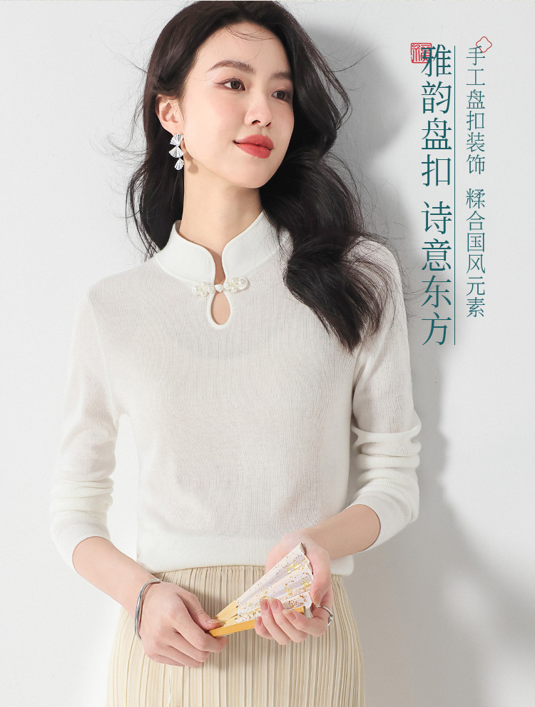 国风新中式轻薄透气含桑蚕丝立领针织打底衫夏款长袖T恤妈妈装 350611