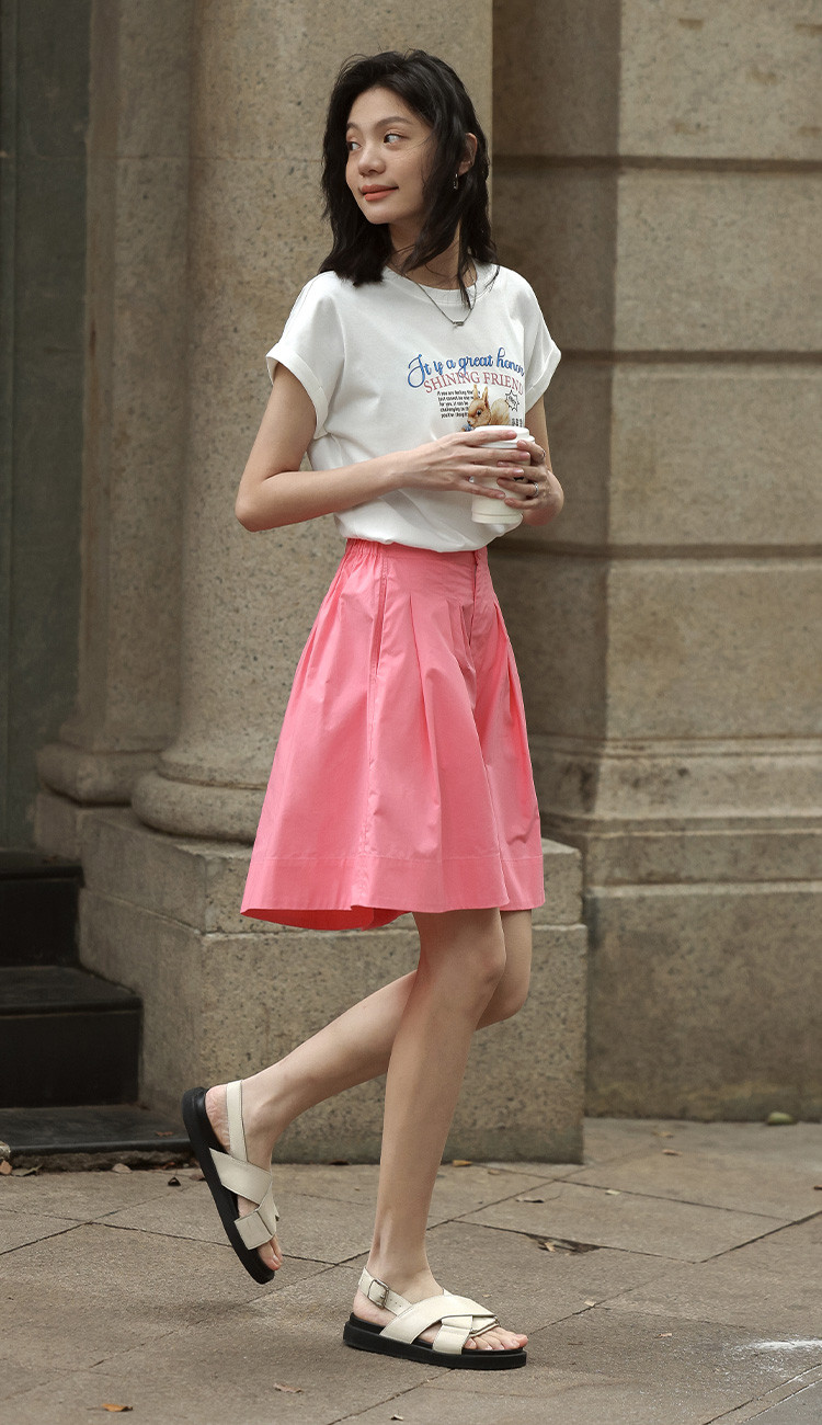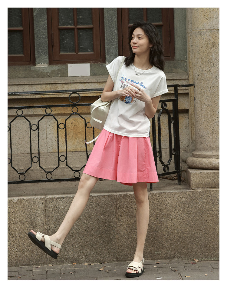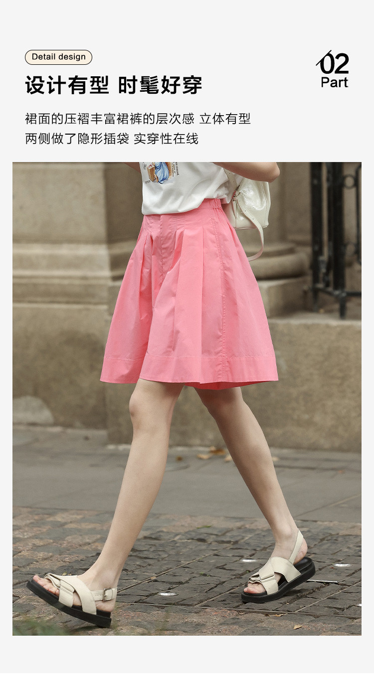 商品名称:【舒适休闲阔腿中裤】夏一粒扣半松紧阔腿裤五分裤女 985154