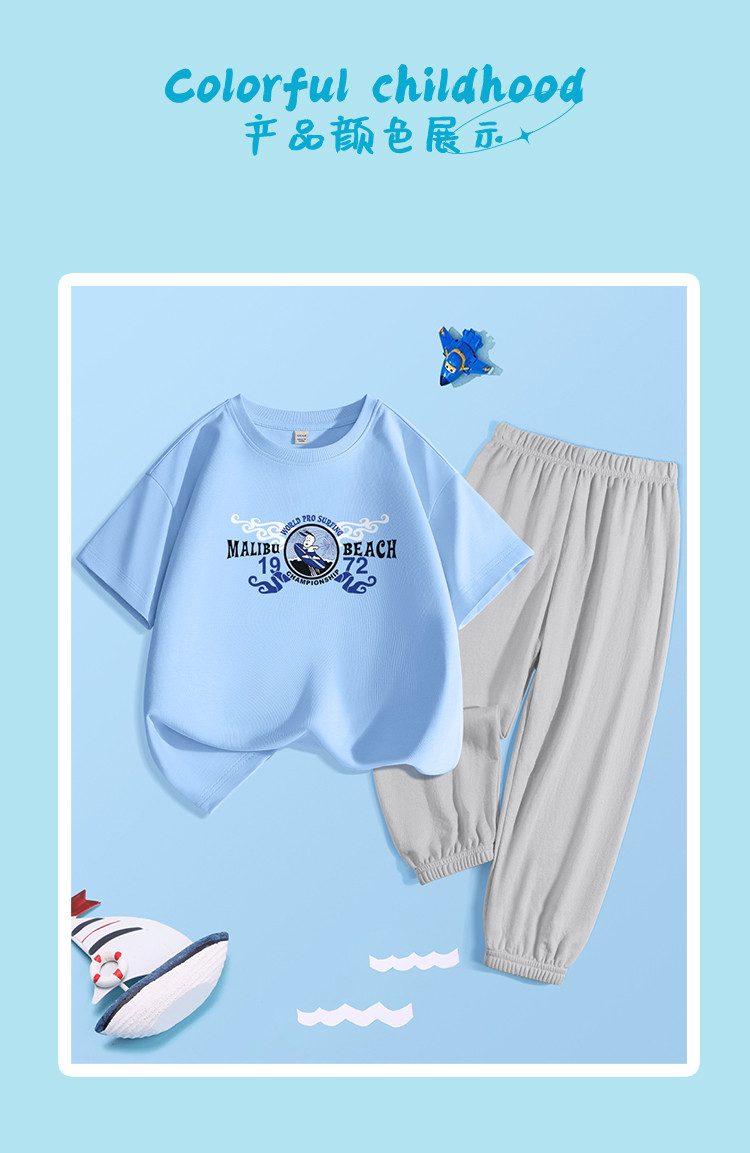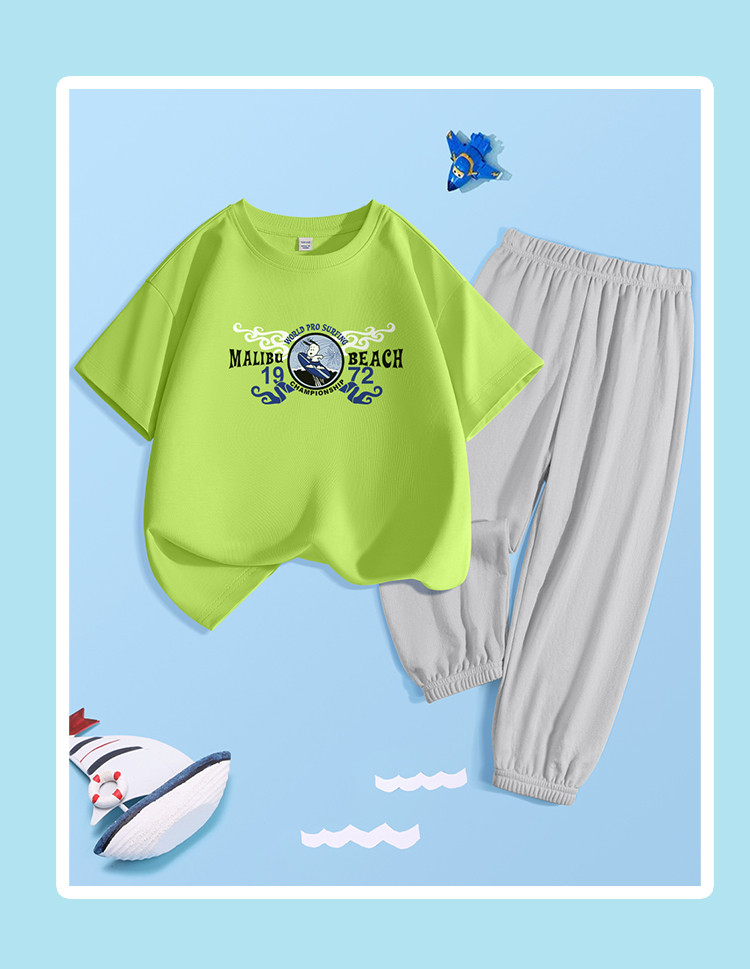商品名称:男童套装中大童夏季纯棉短袖t恤青少年可防蚊裤子儿童运动两件套 929951