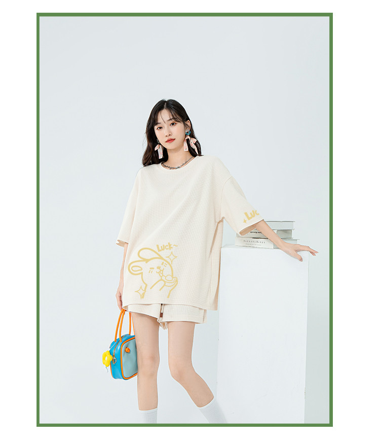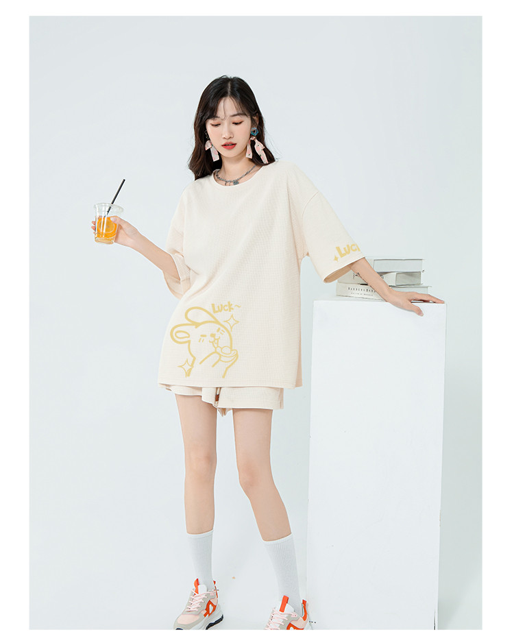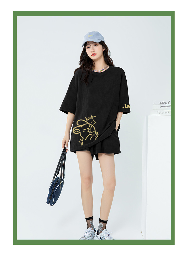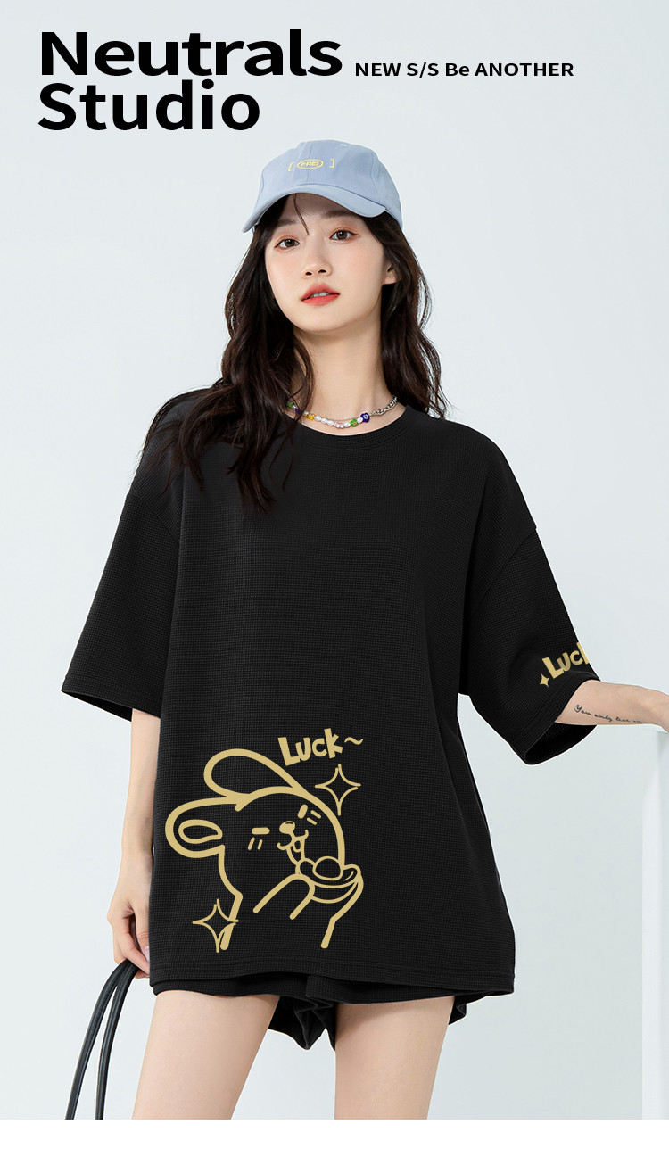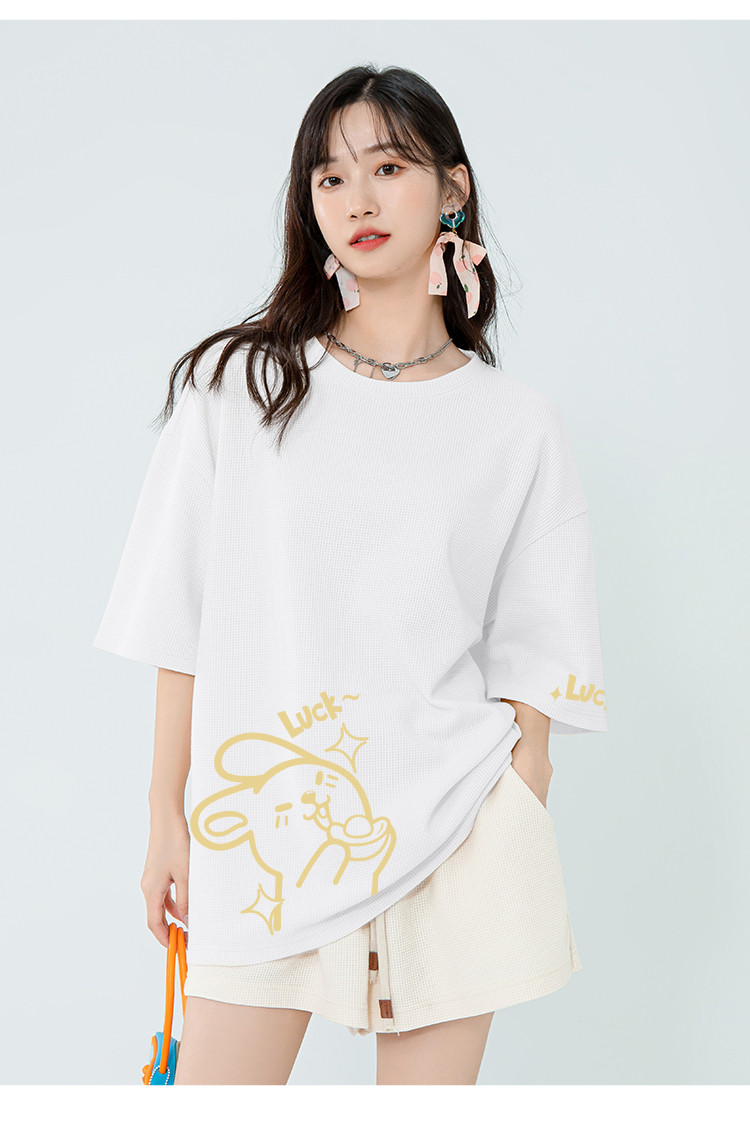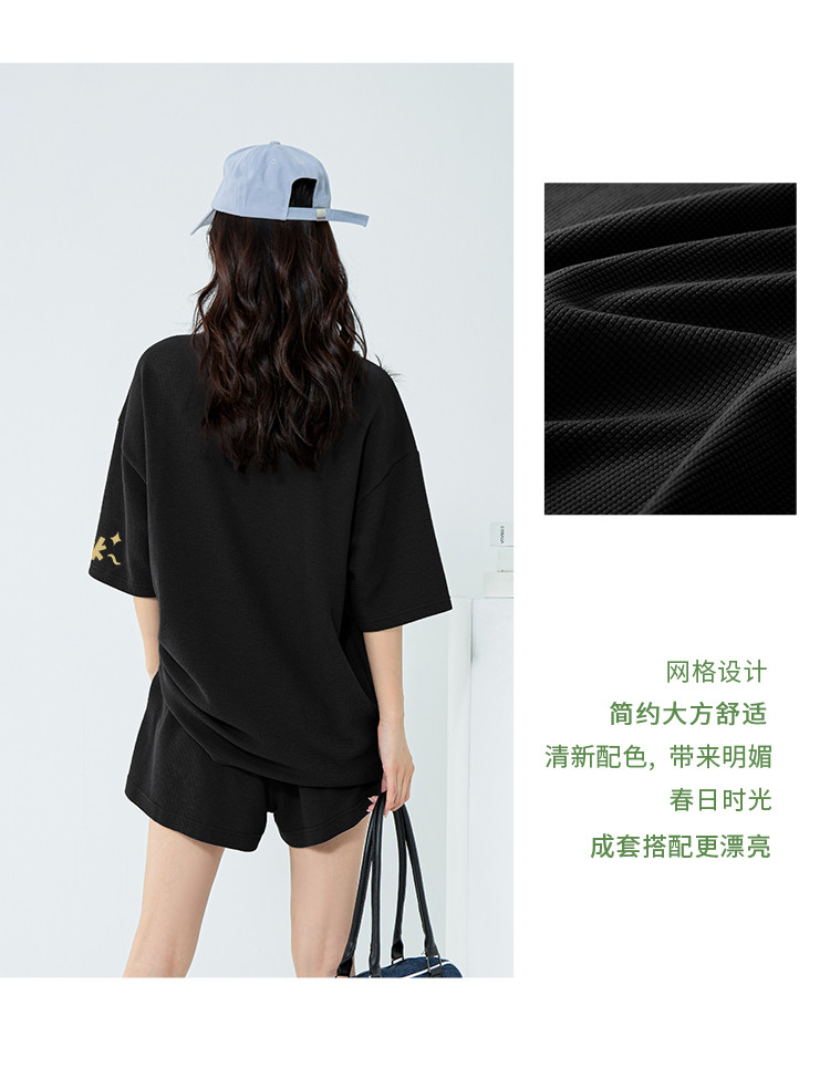 【女装】华夫格中长款女式T恤夏季宽松休闲运动上衣 184723