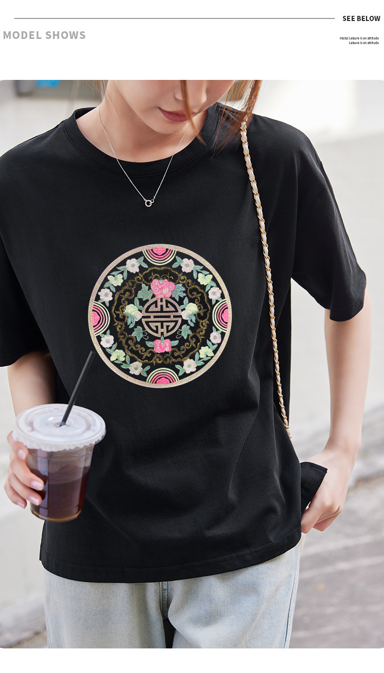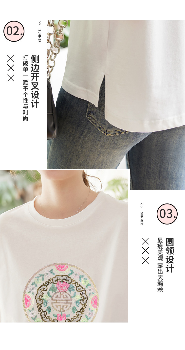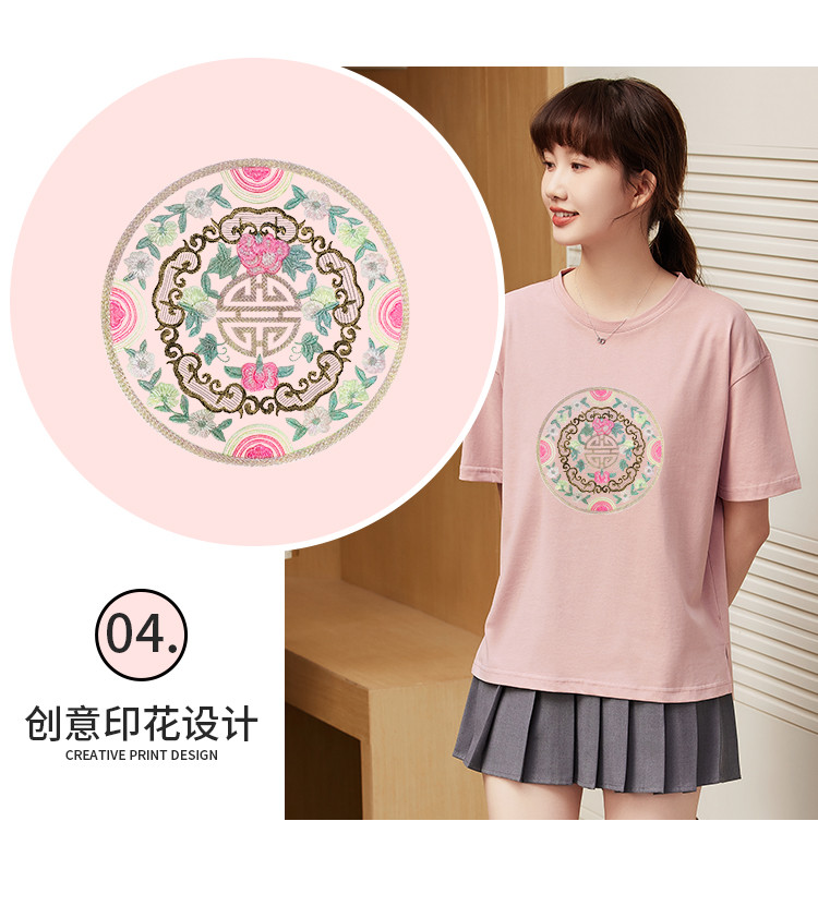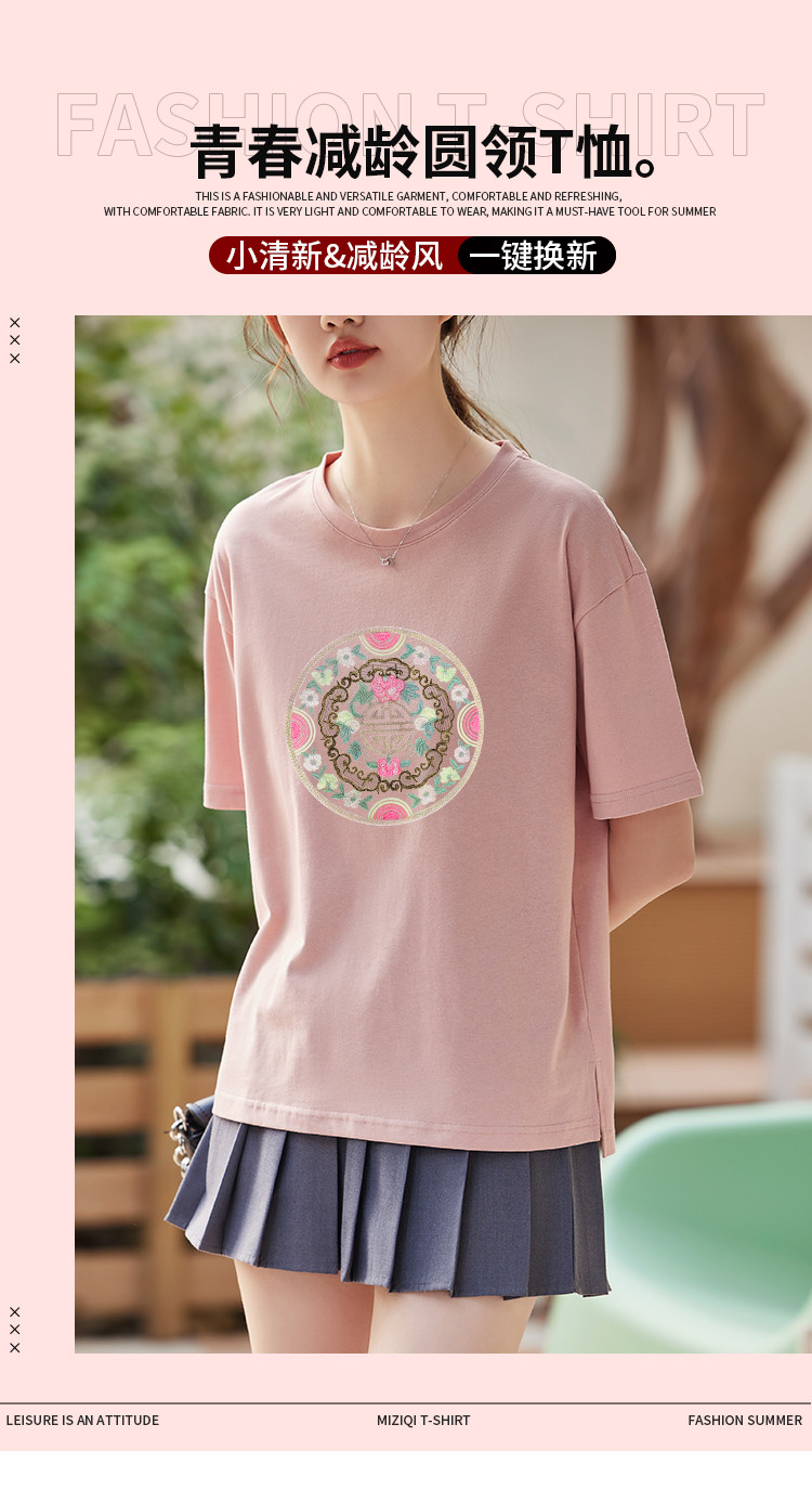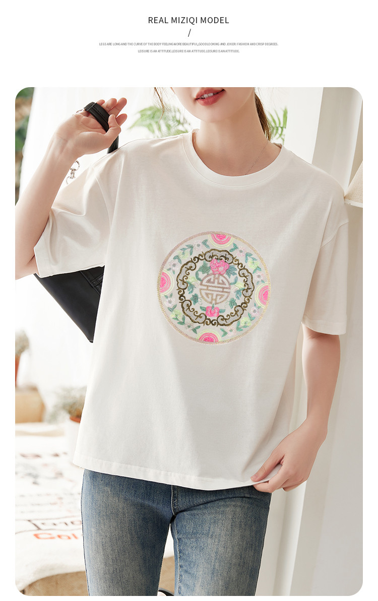 商品名称:米子旗夏季圆领新中式国风印花大码T恤女时尚气质短袖上衣 692122