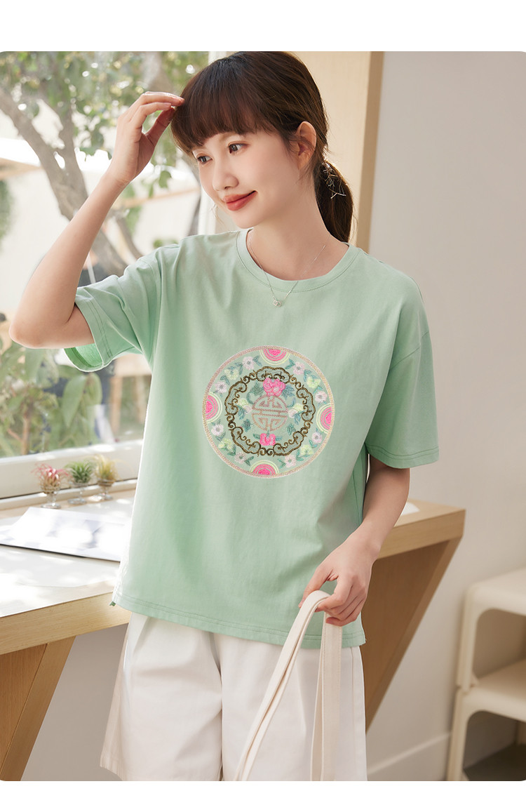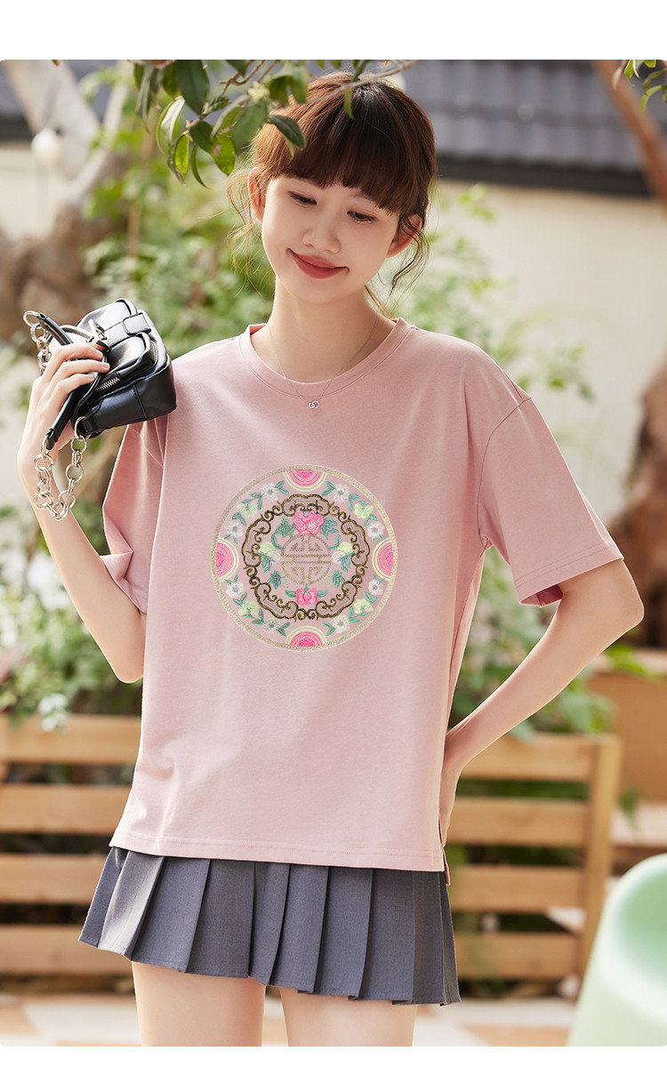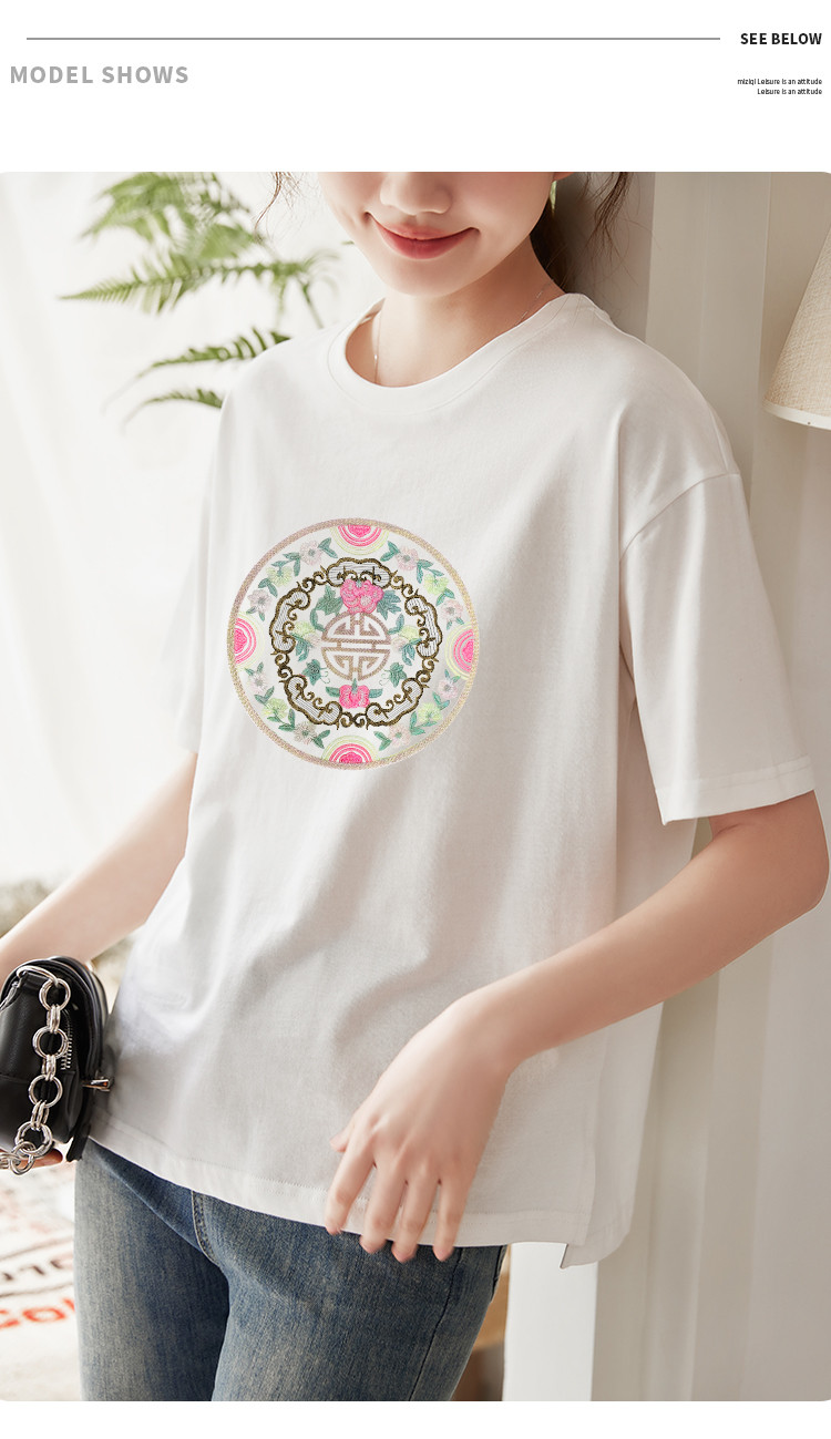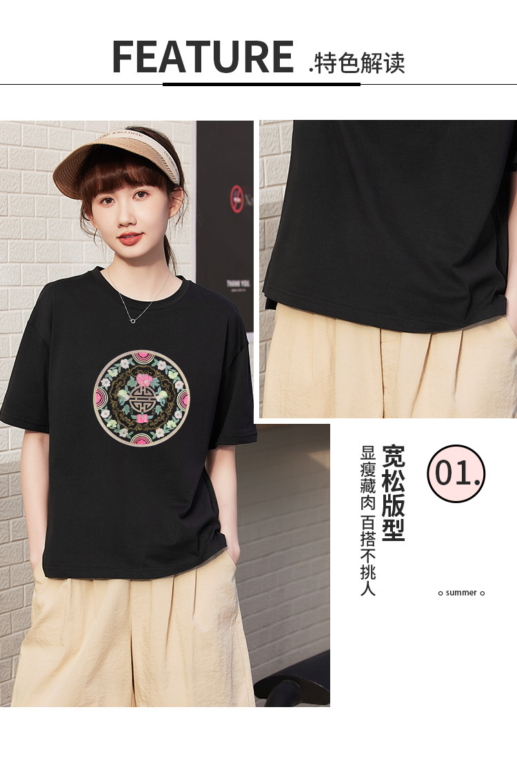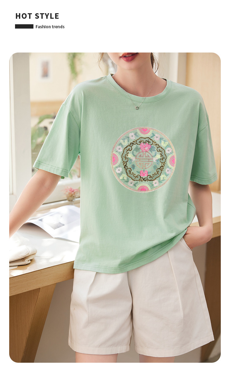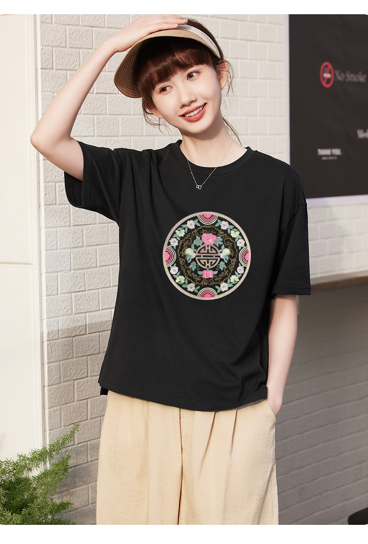 商品名称:米子旗夏季圆领新中式国风印花大码T恤女时尚气质短袖上衣 692122