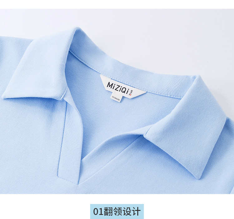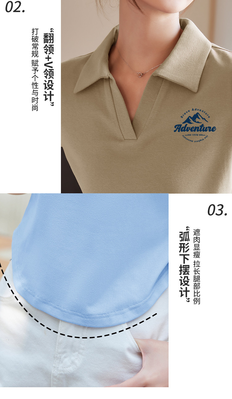 商品名称:米子旗夏季POLO领印花女式T恤弧形下摆短款修身正肩短袖上衣 372186