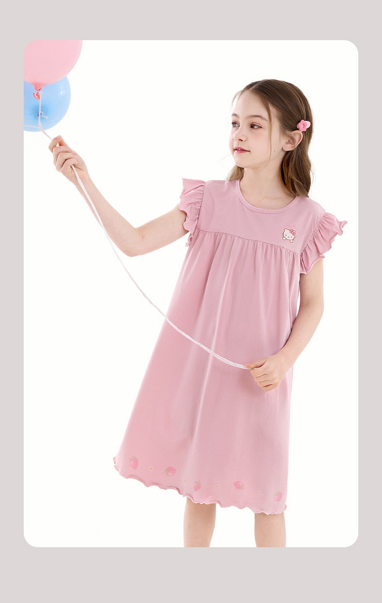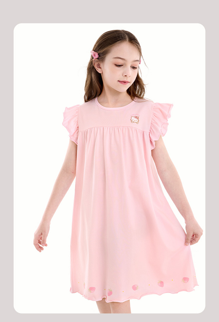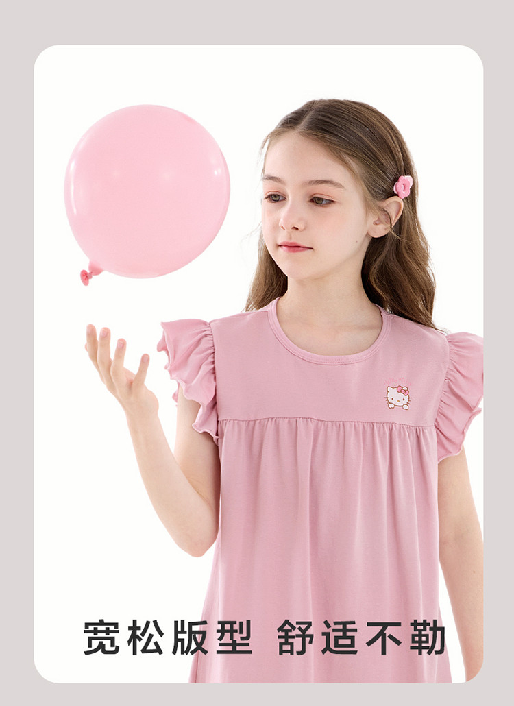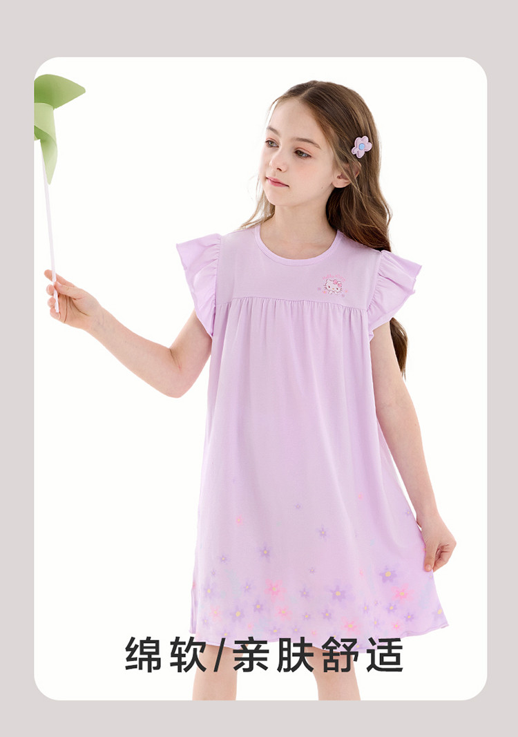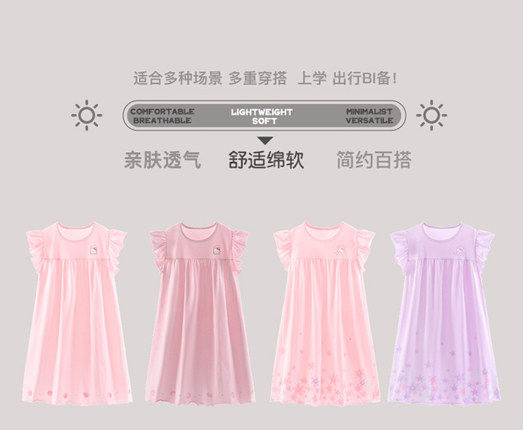 商品名称:女童睡裙夏2025新款儿童睡衣棉质中大童家居服小飞袖裙子童装 331777