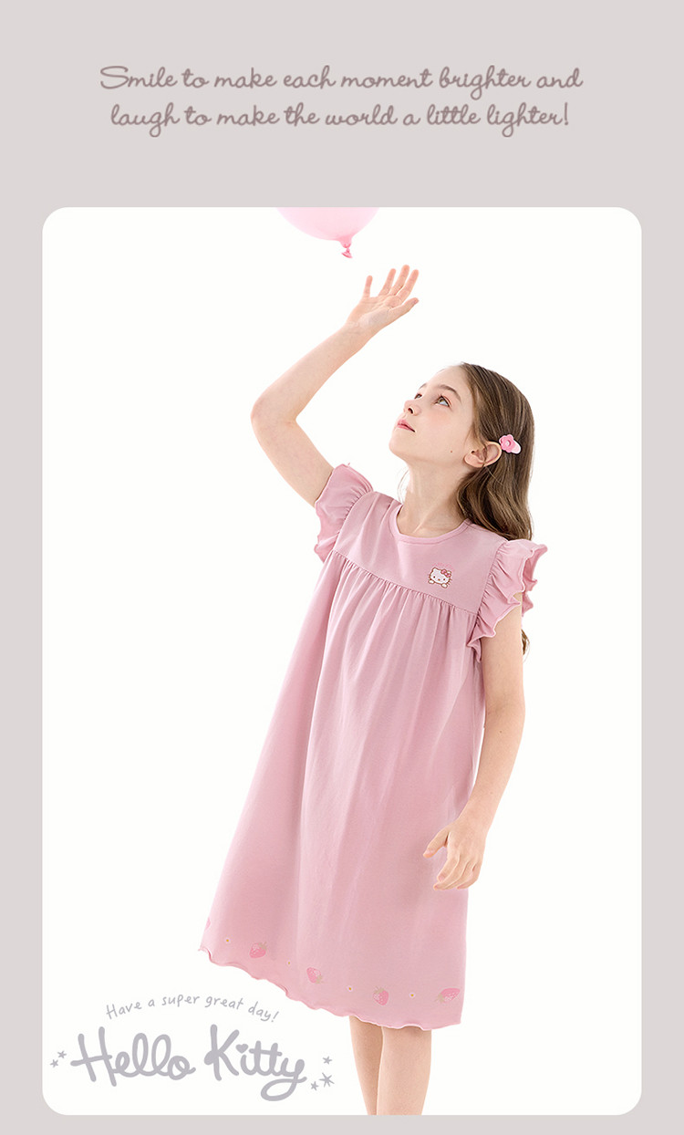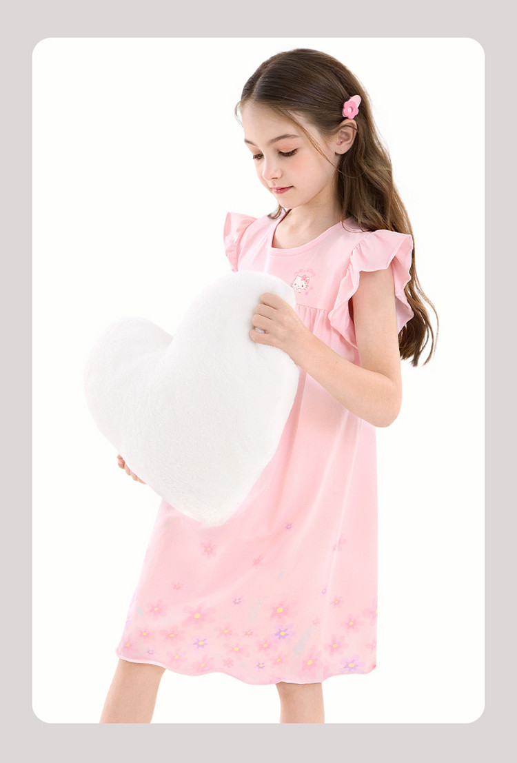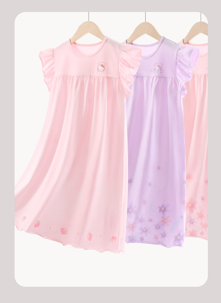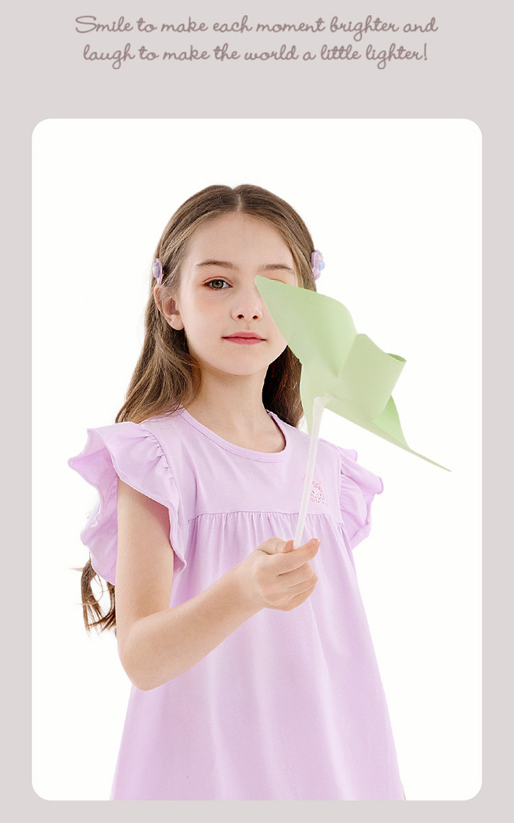 商品名称:女童睡裙夏2025新款儿童睡衣棉质中大童家居服小飞袖裙子童装 331777