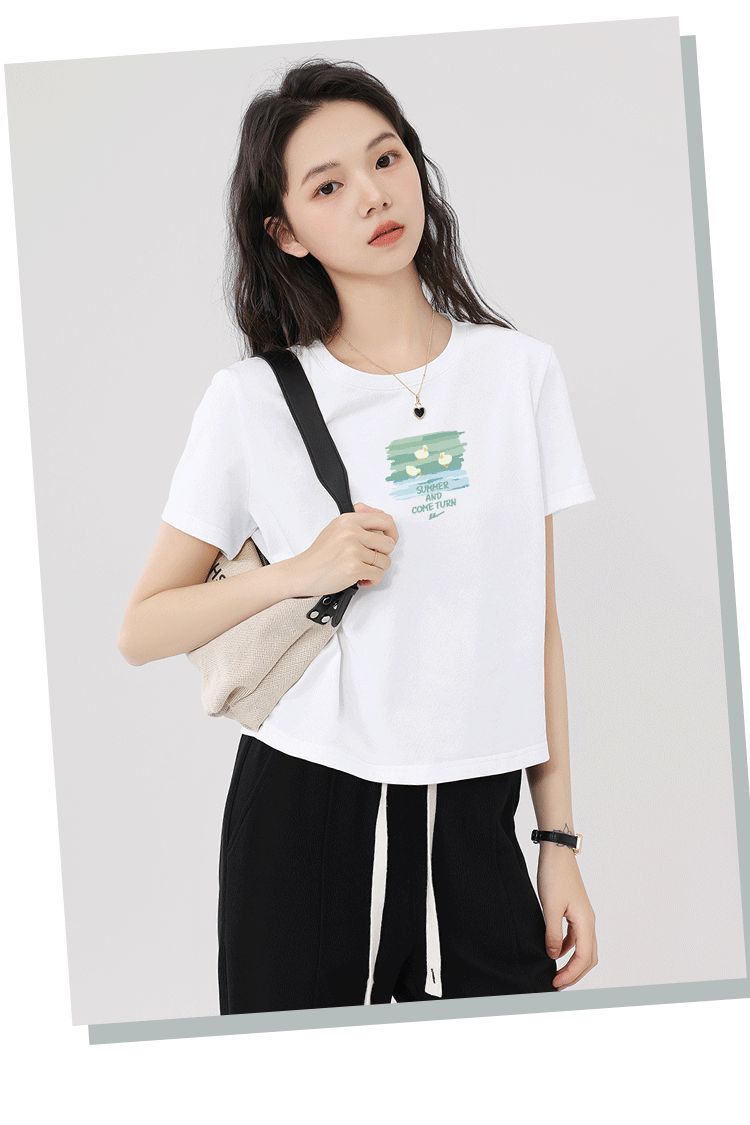 【女装100%棉】夏季女式短袖休闲短款显瘦正肩设计感T恤 214675