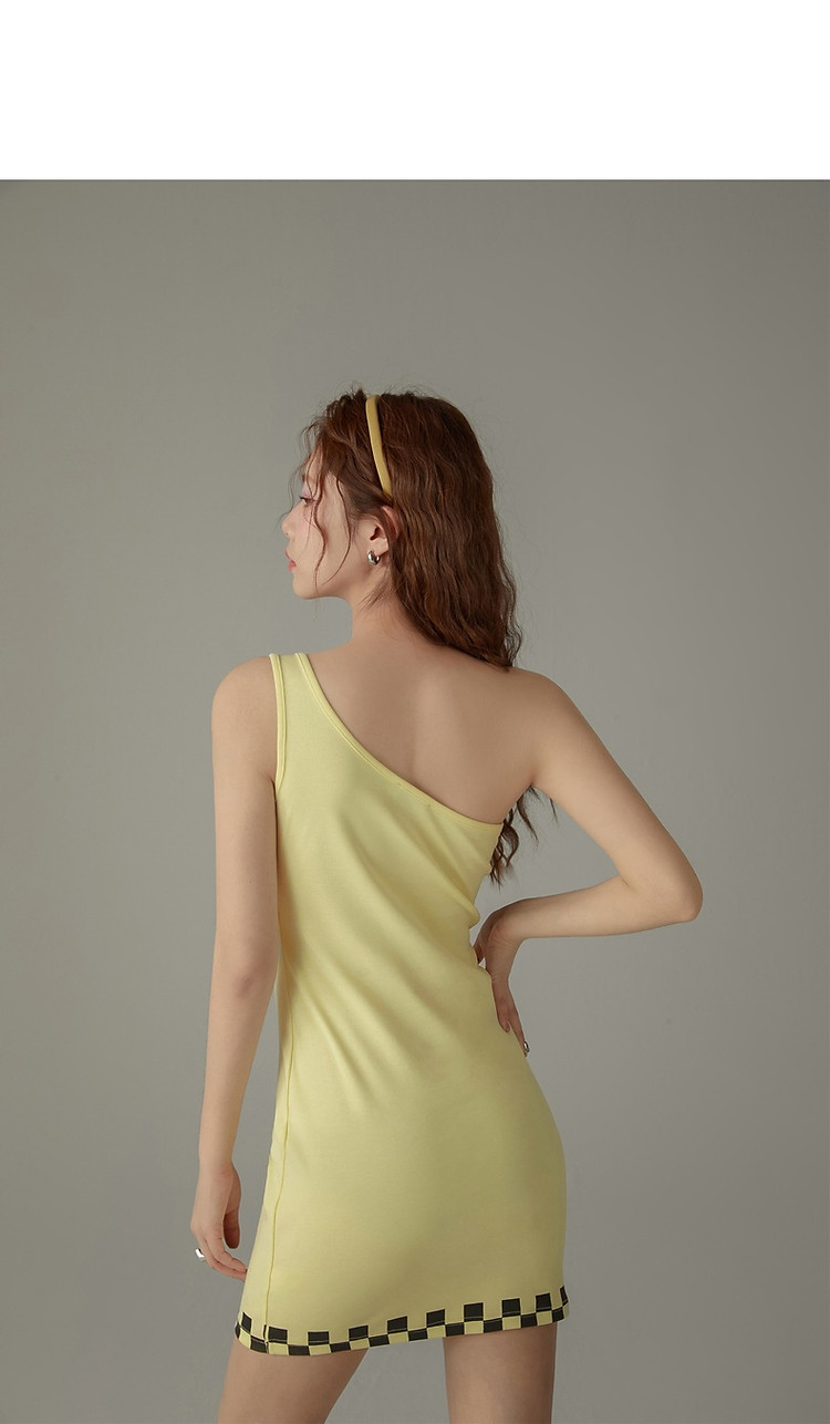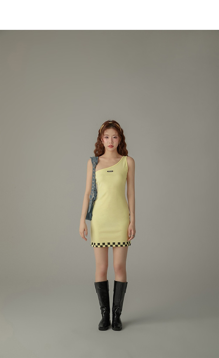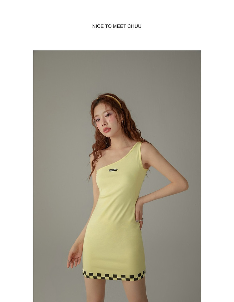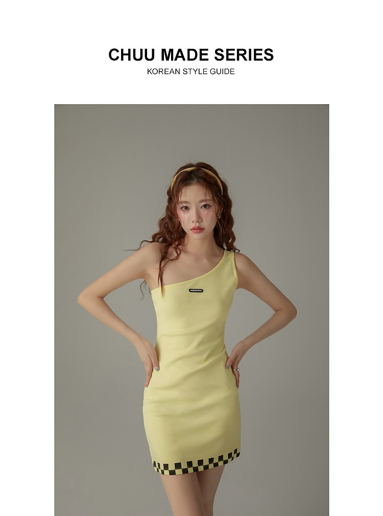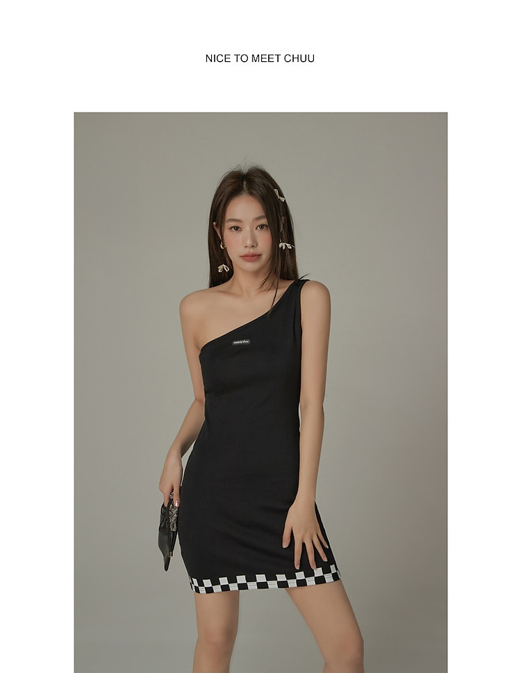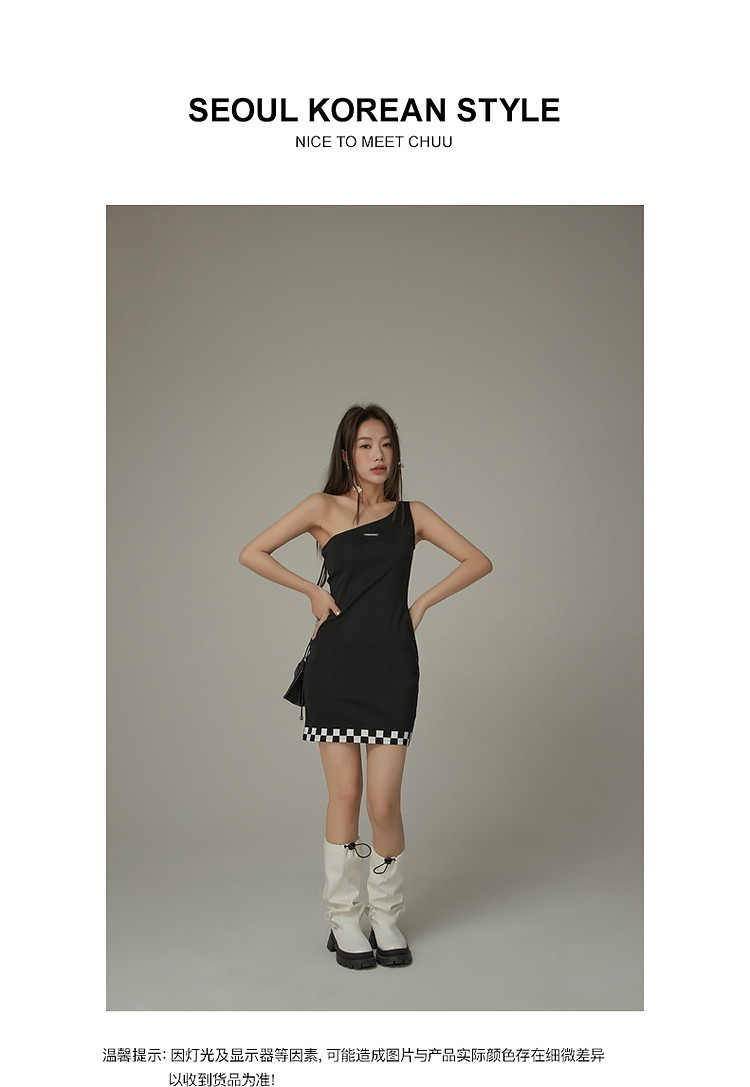 CHUU吊带连衣裙女夏辣妹斜肩露背拼色包臀短裙子 855443