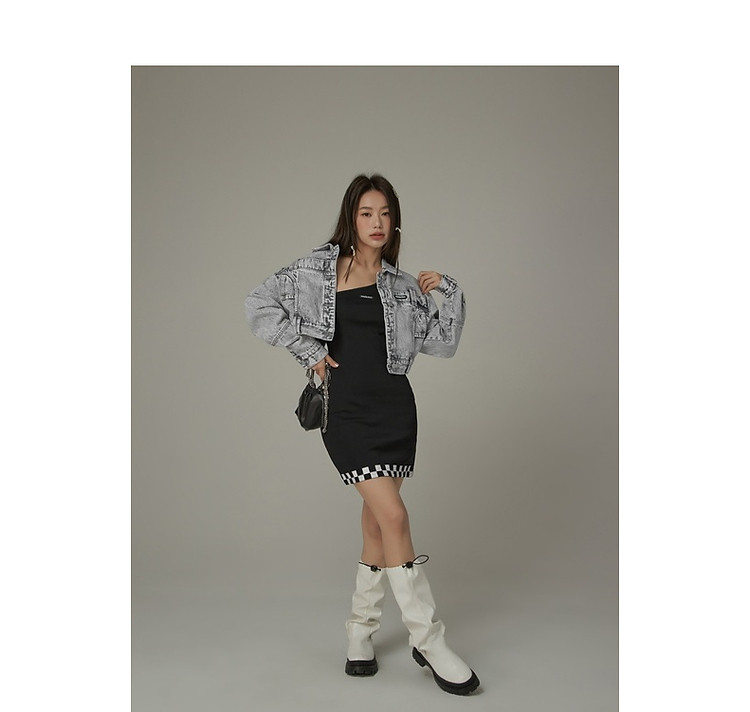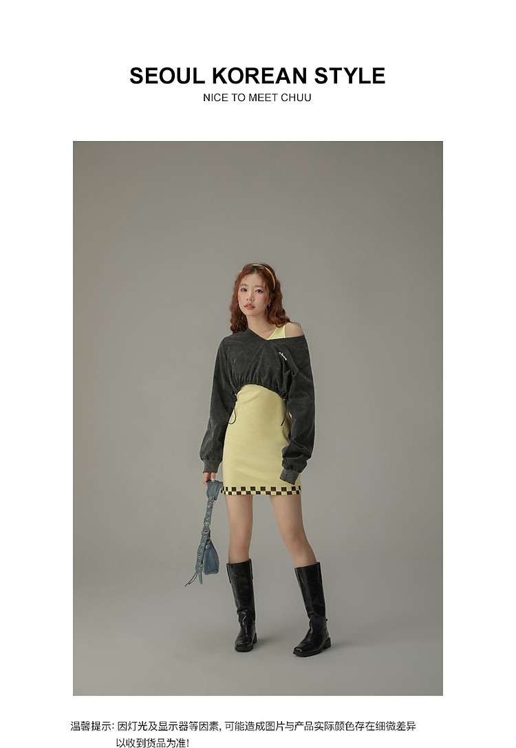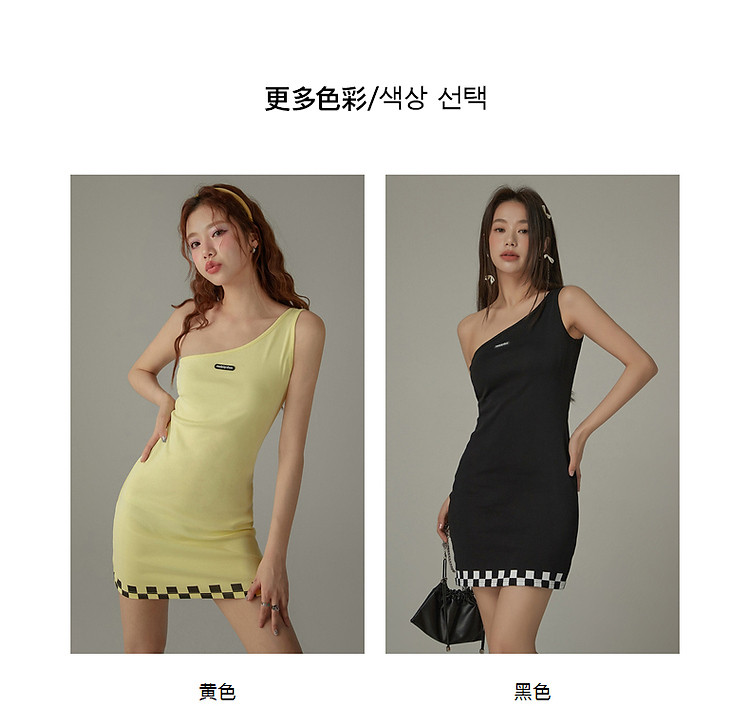 商品名称:CHUU吊带连衣裙女夏辣妹斜肩露背拼色包臀短裙子 855443
