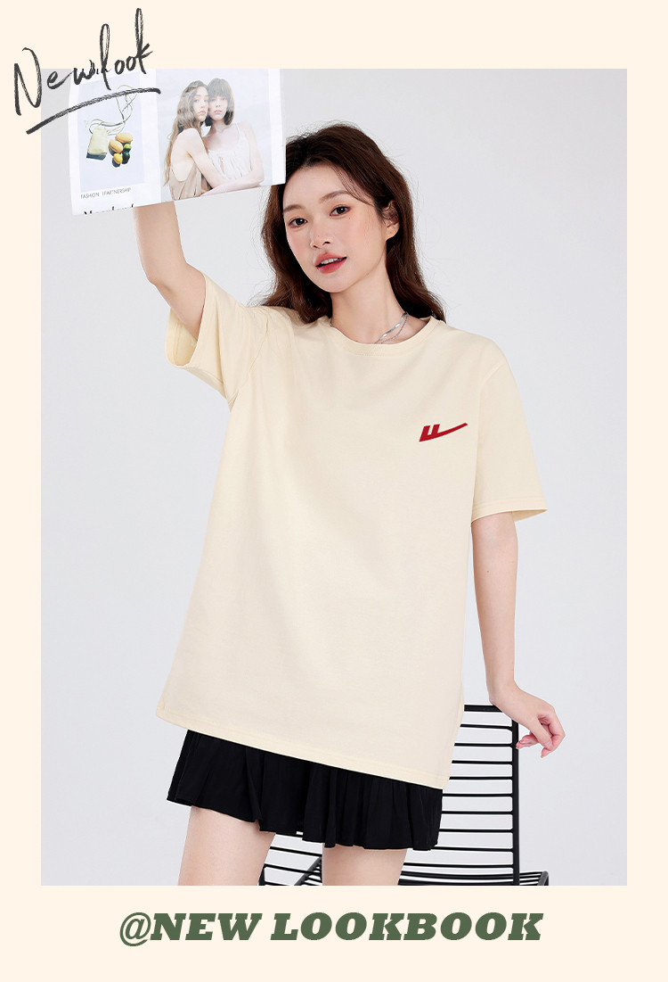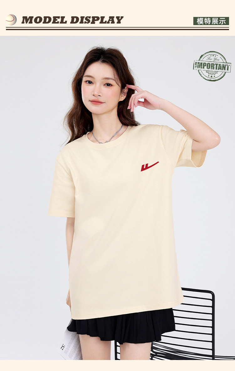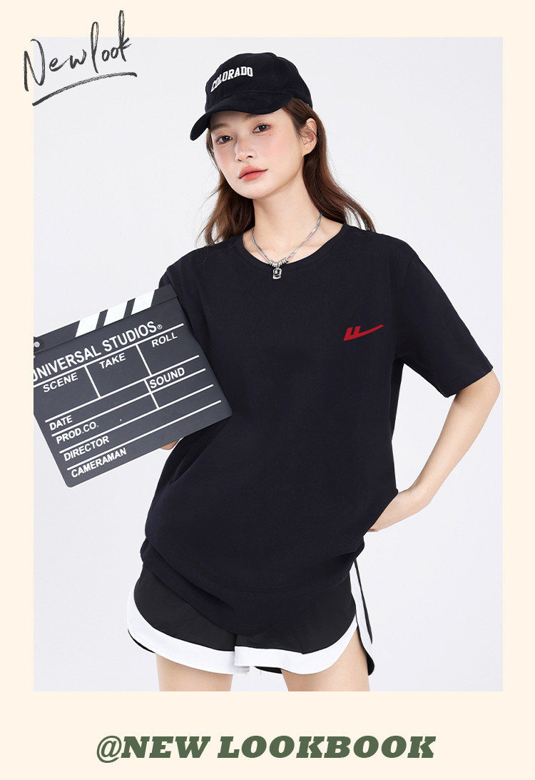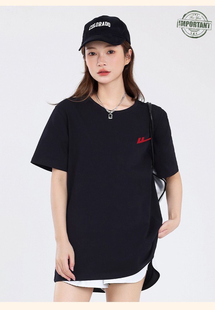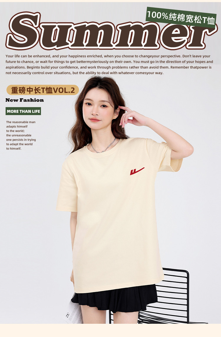 商品名称:【女装重磅棉】夏季纯棉圆领T恤女运动休闲宽松中长款短袖上衣 763219