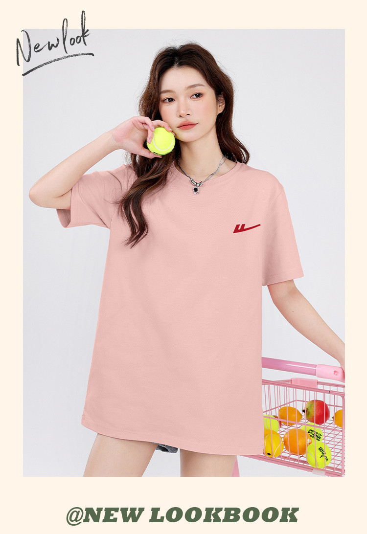 【女装重磅棉】夏季纯棉圆领T恤女运动休闲宽松中长款短袖上衣 763219