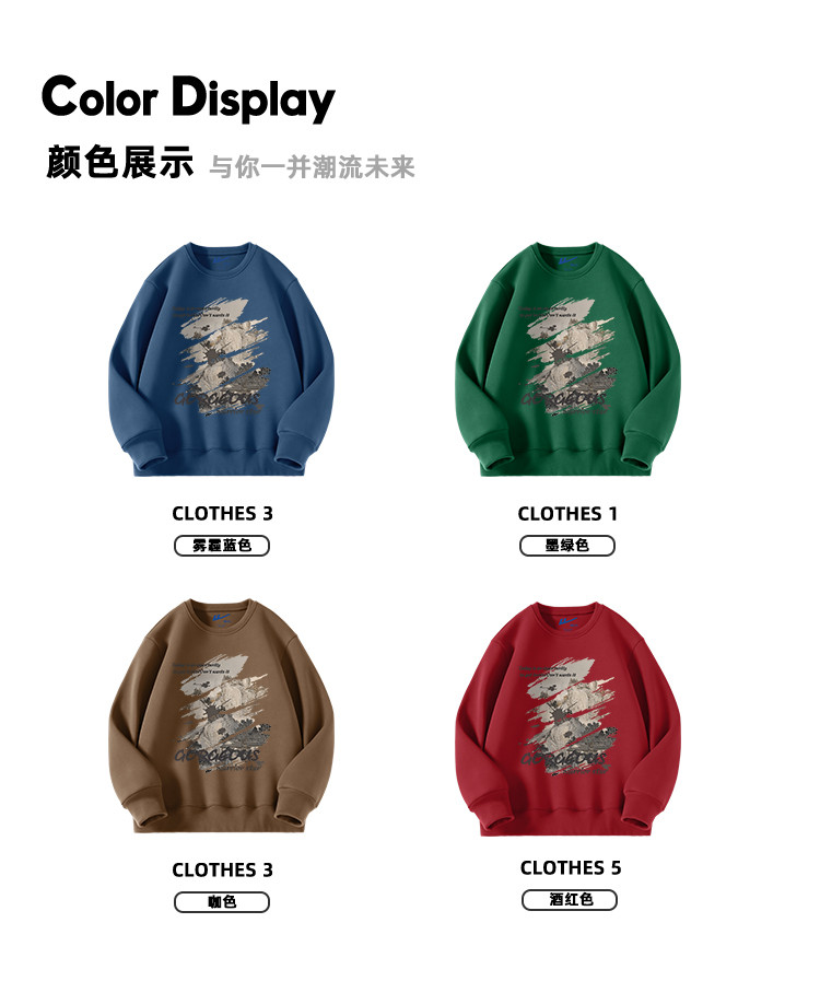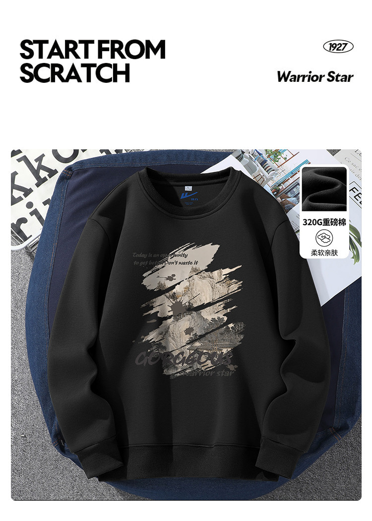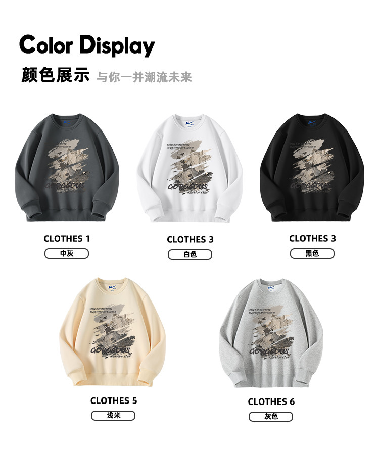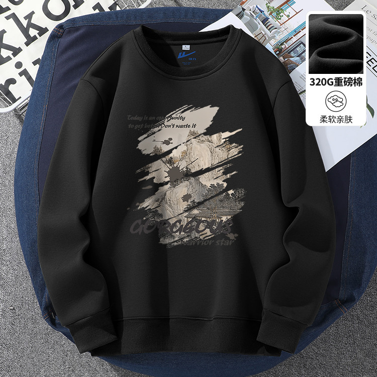 商品名称:【重磅精梳棉】春秋款长袖圆领套头上衣国潮宽松大码男士运动卫衣 663699