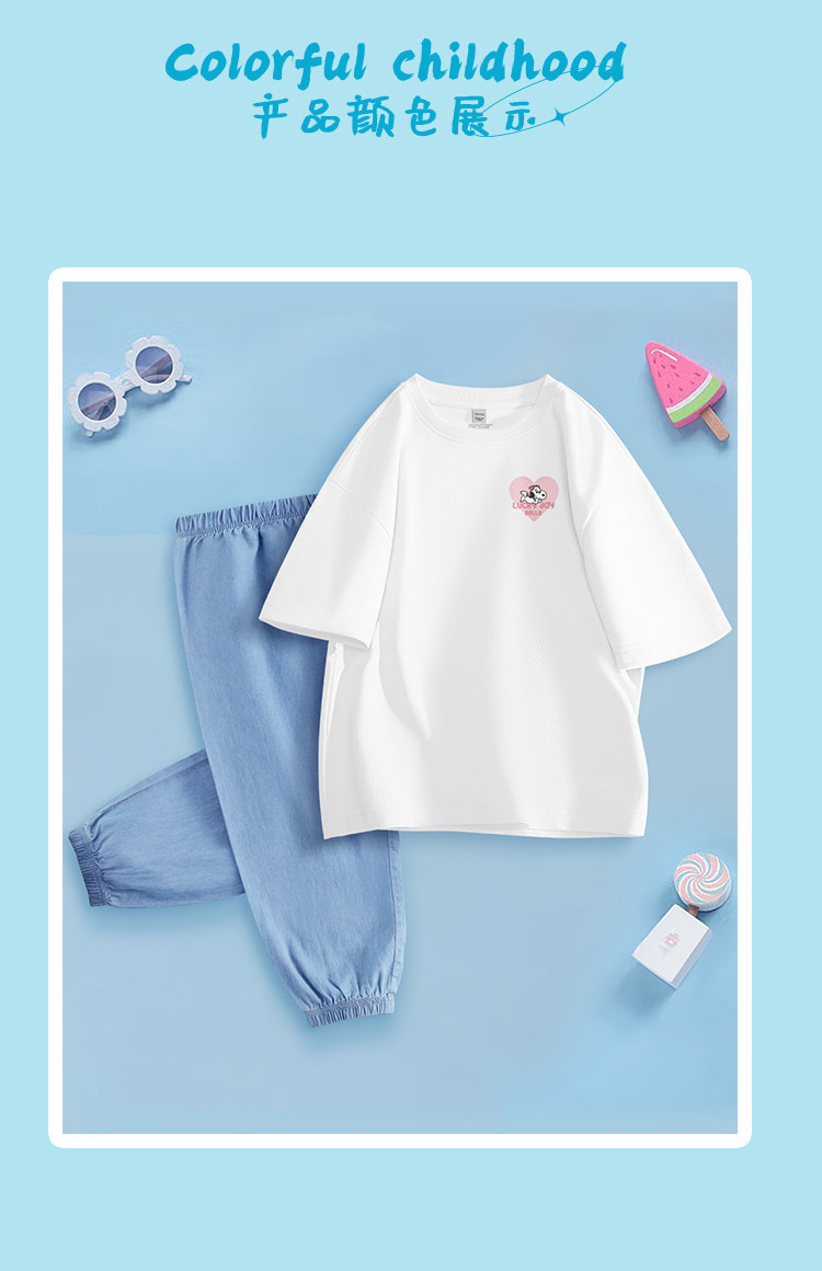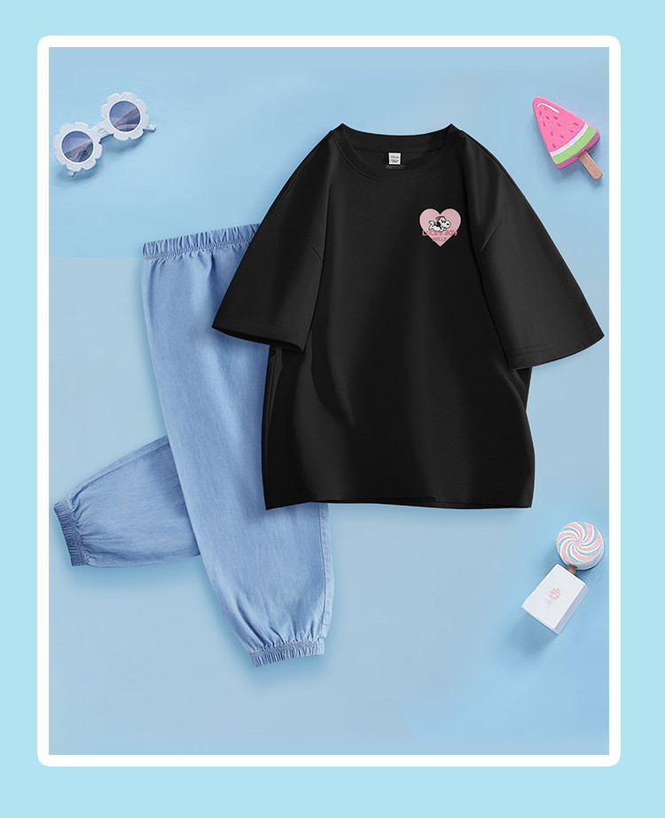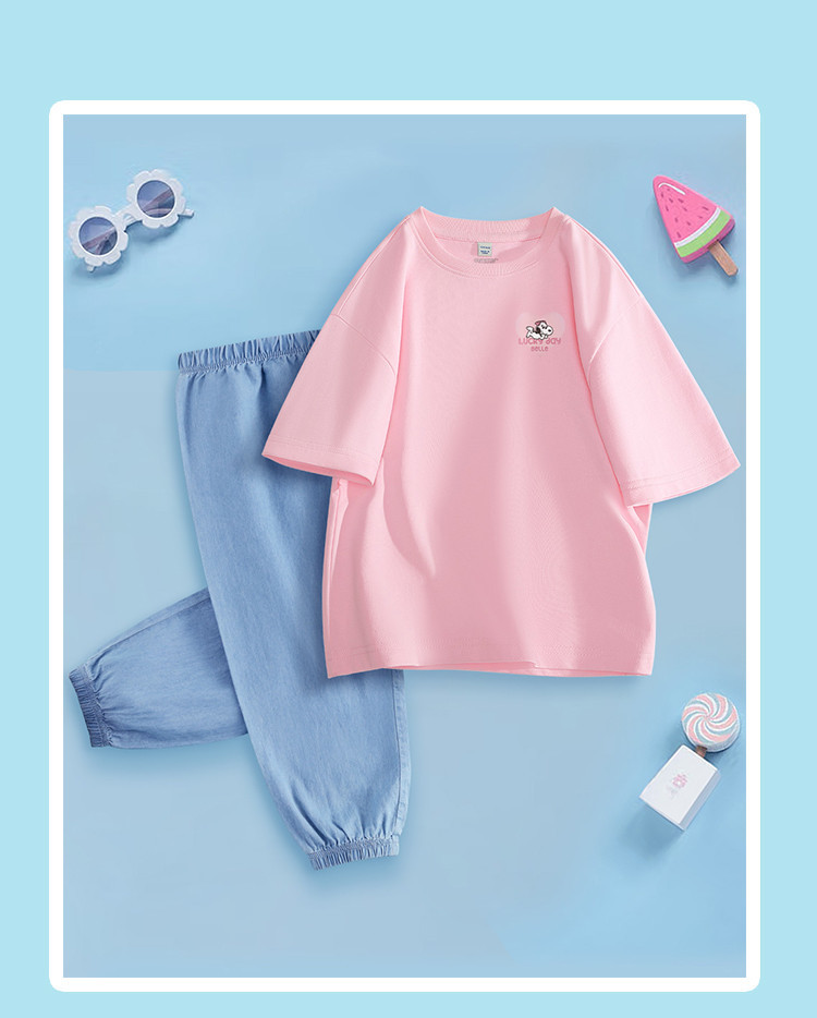商品名称:女童套装25年夏季纯棉短袖t恤中大童仿牛仔裤儿童运动两件套薄 508191