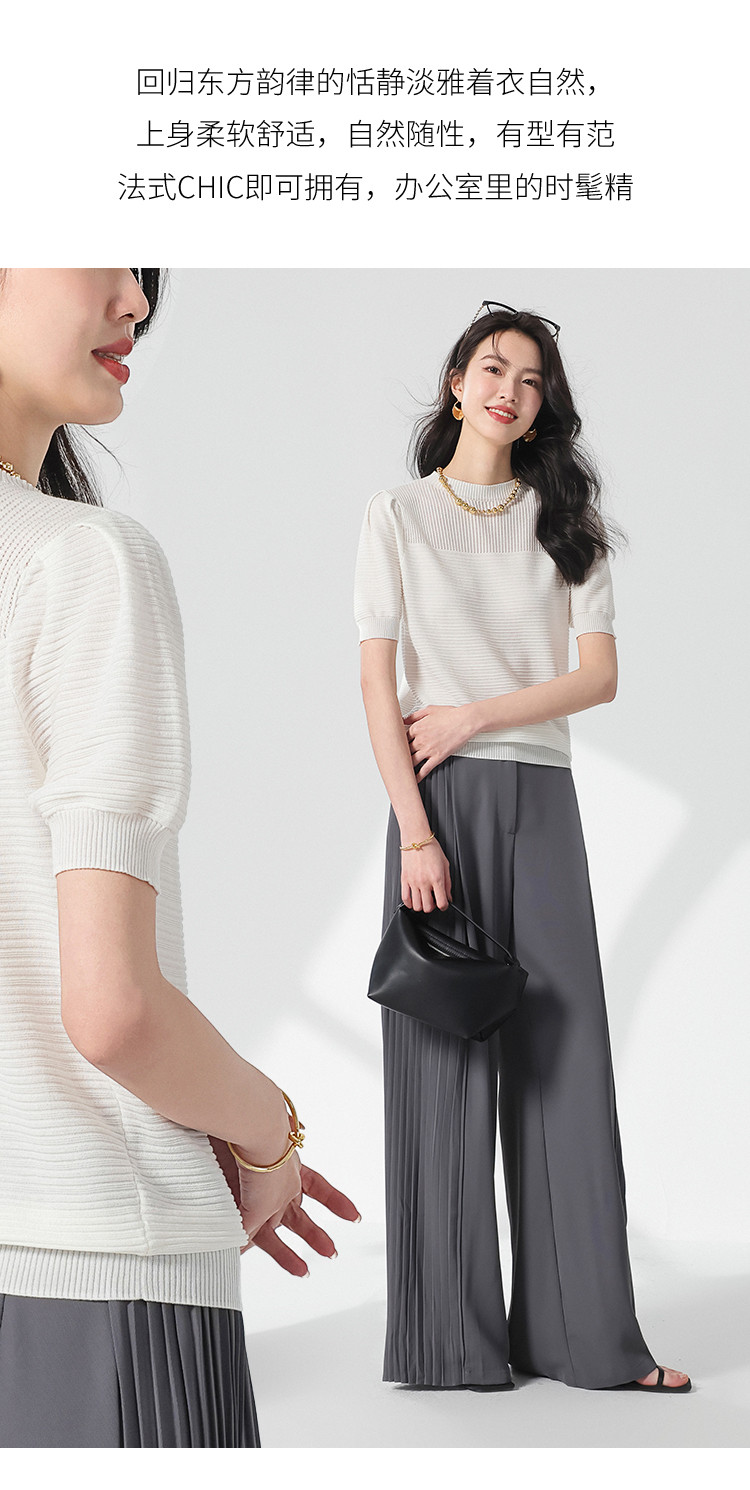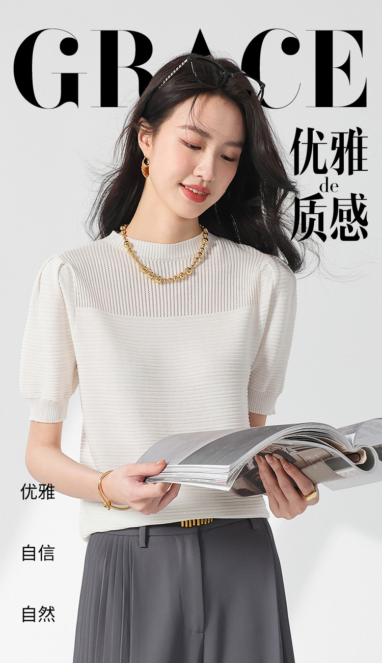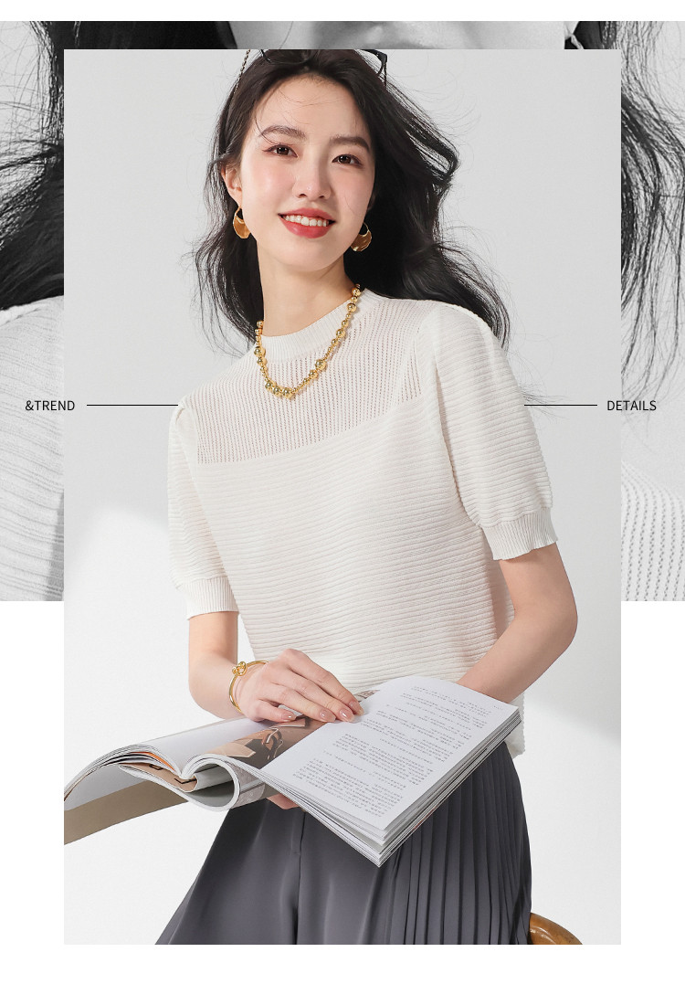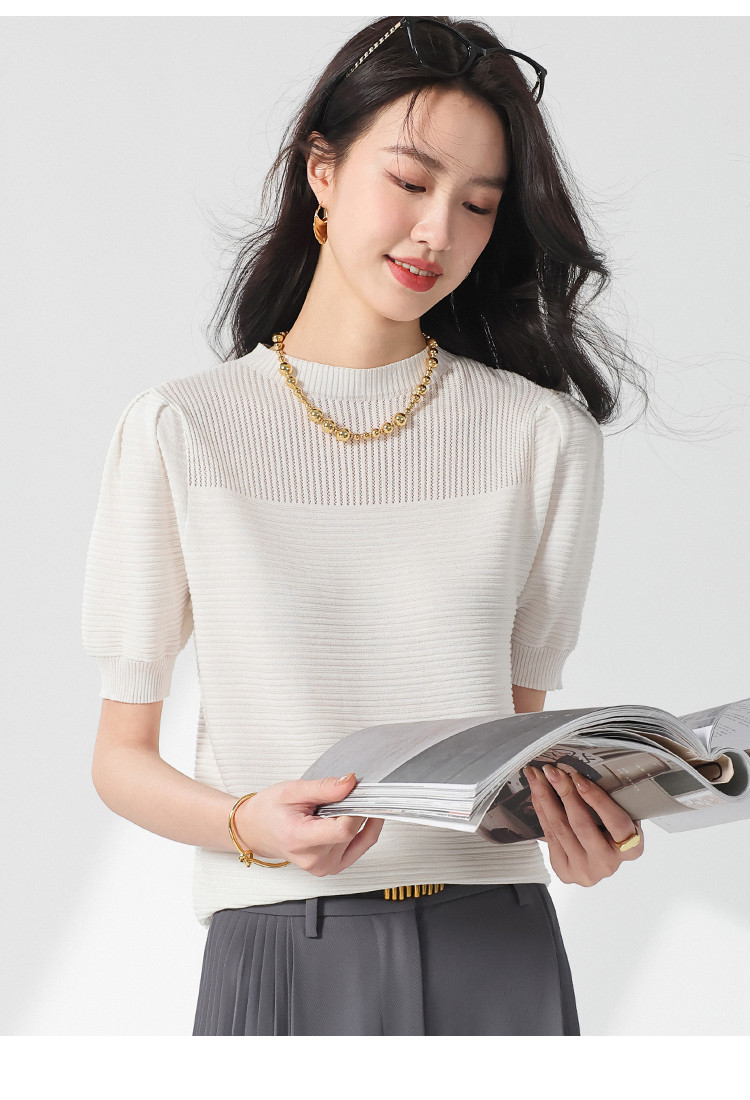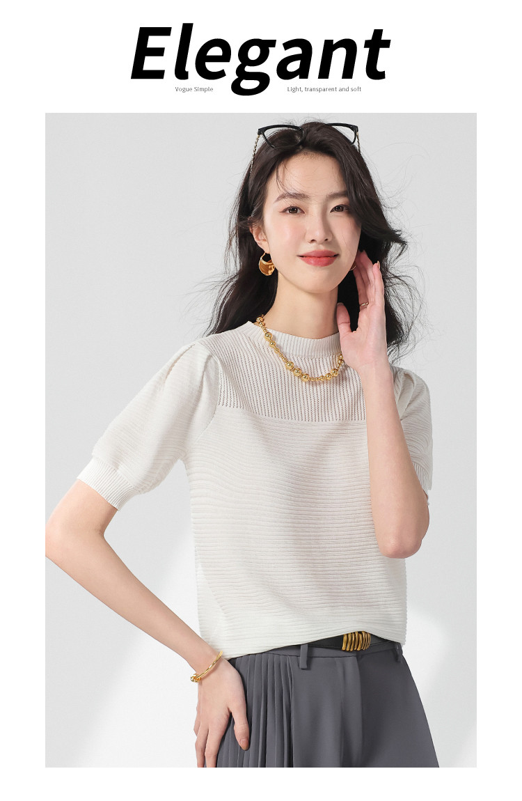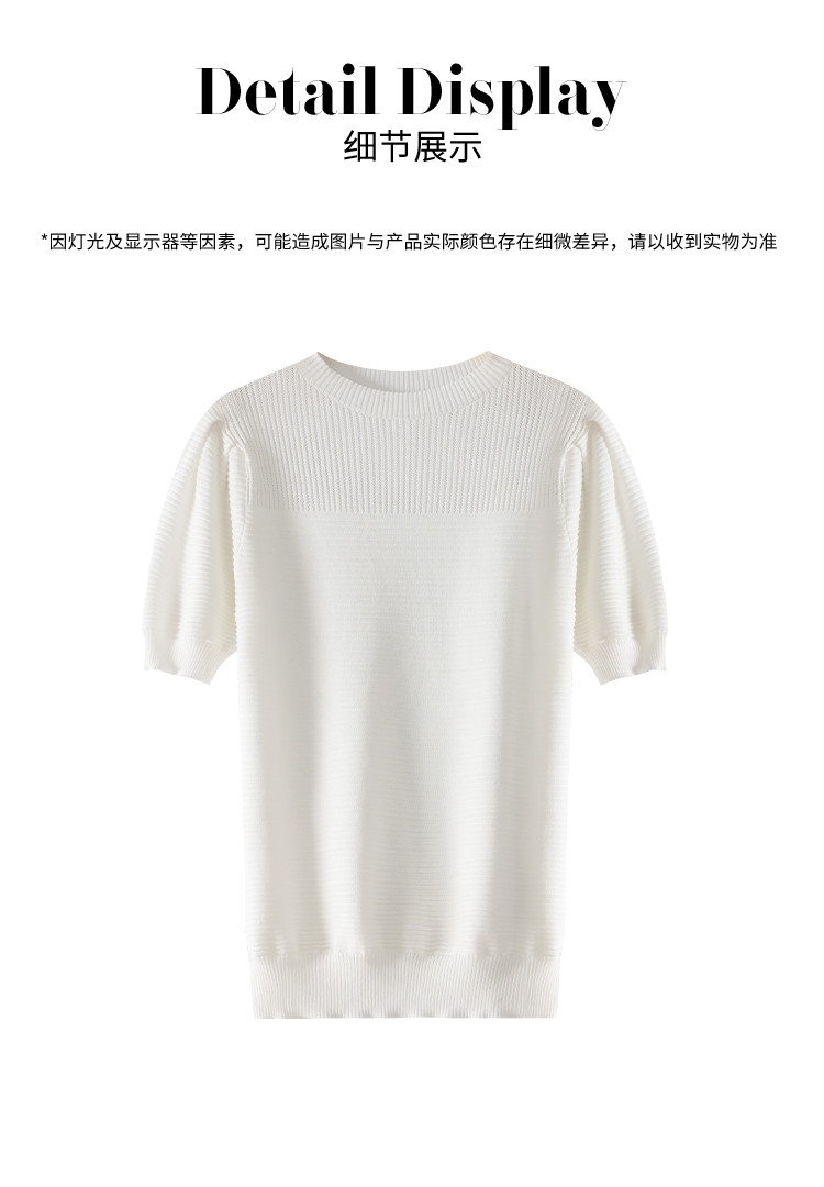 商品名称:【含桑蚕丝】轻薄透气纯色泡泡袖针织衫女夏短袖T恤 222419